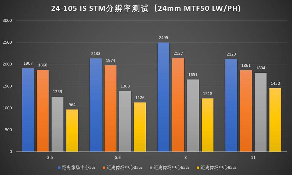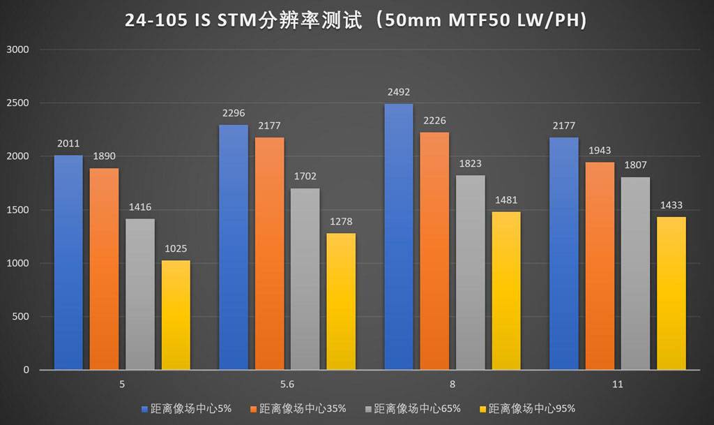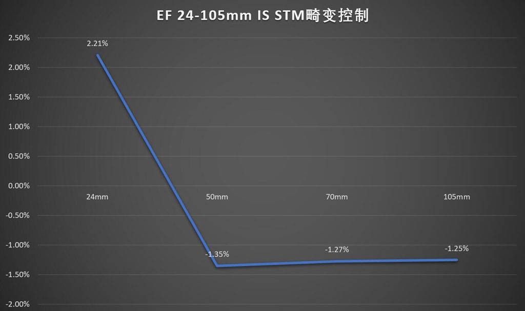 畸变这个倒是与光圈无关,实打实的强于两支带L的哥们。而且在测试过的所有24-105(120)mm规格的镜头里,这支也是畸变控制最好的。