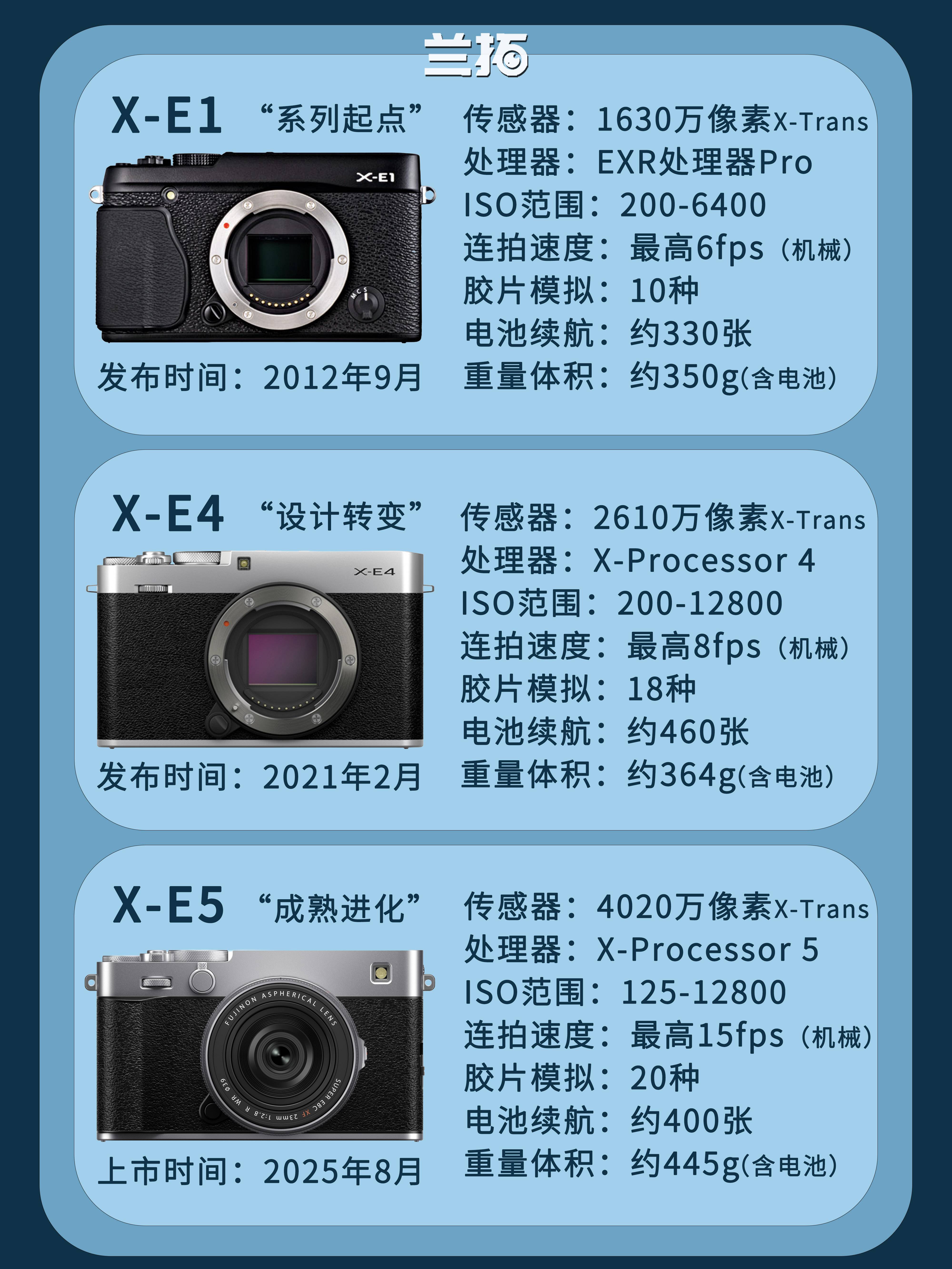其实在X-E5发布后,我们就有想过做一个这样的对比。 所以这次我们将富士X-E1和X-E5放在一起,也并不是为了怀旧,而是想看看——当一个系列历经十多年,从第一代走到最新一代,改变的是什么。
