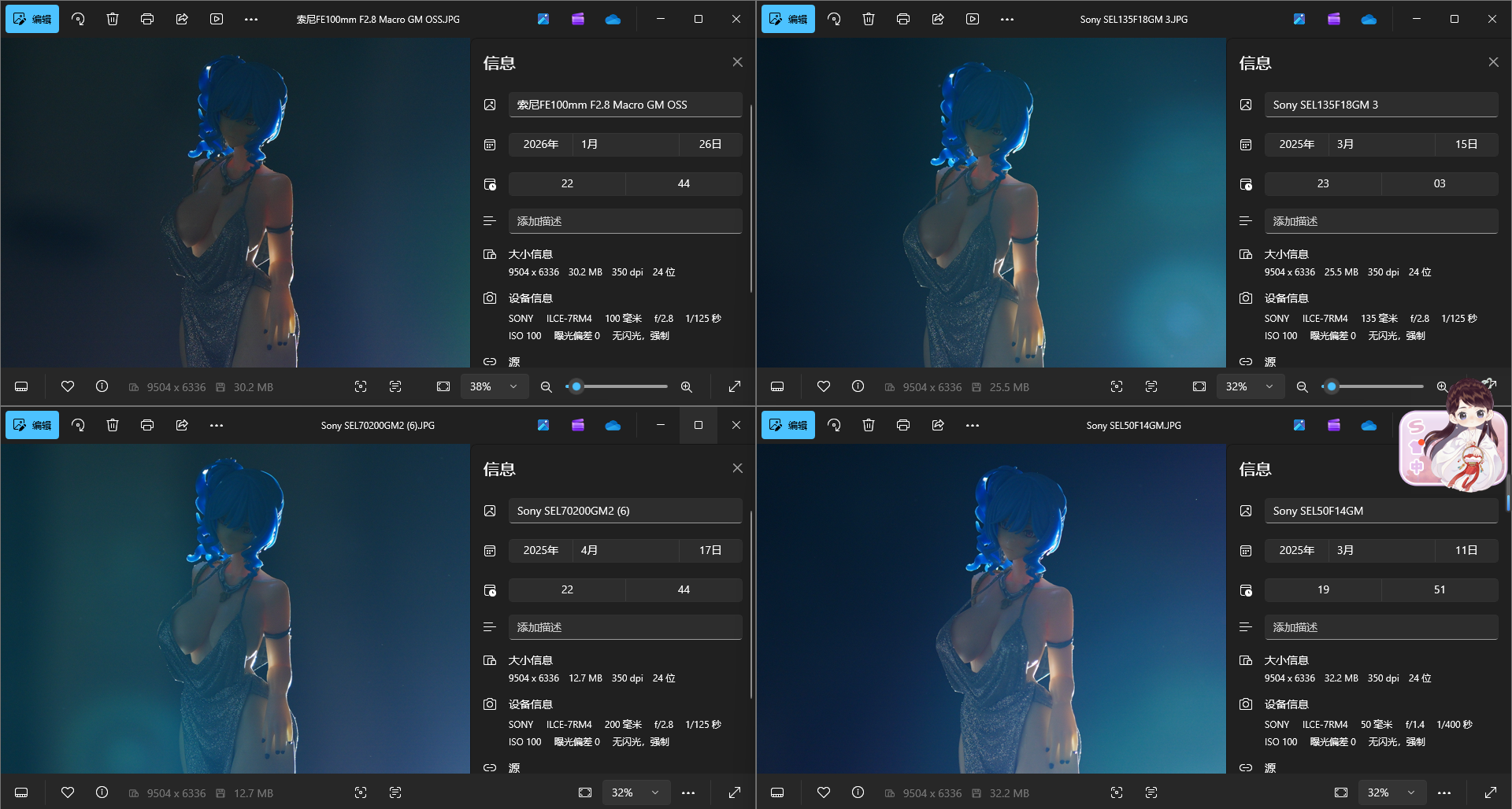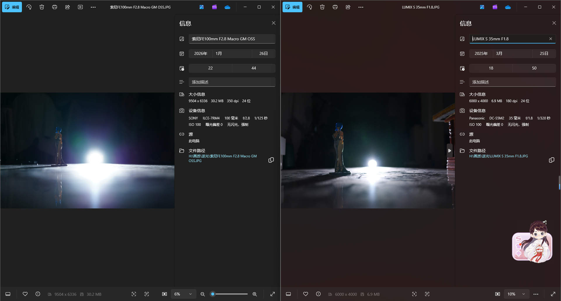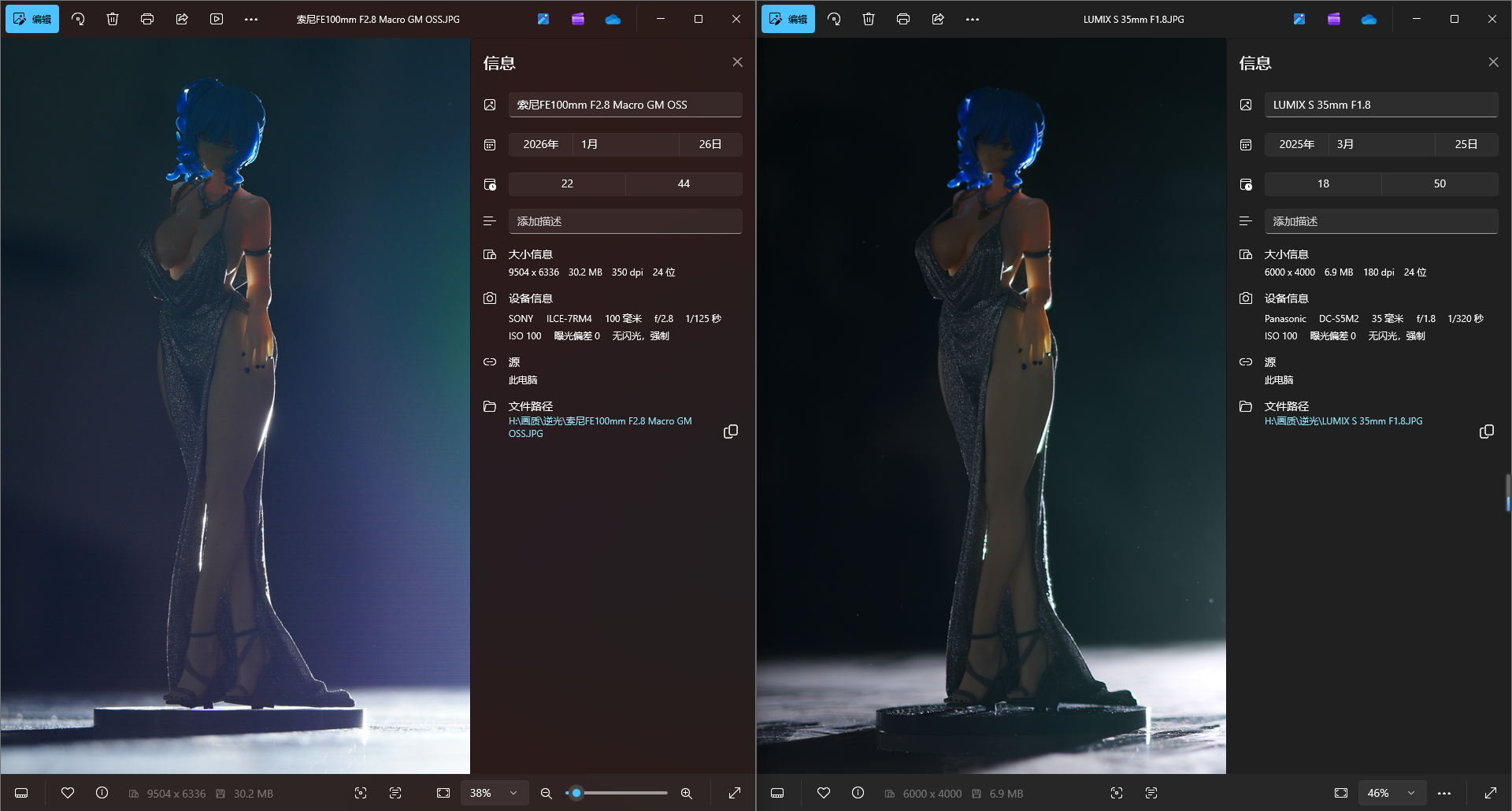 接下来选择一颗久负盛名的高画质G大师镜头135GM以及短摄距下表现极佳的50 1.4GM,可以看到在收到同光圈后色散方面依然都是100GM略微占优,当然了微距镜头设计光圈更小和近摄优化也有一定的优势