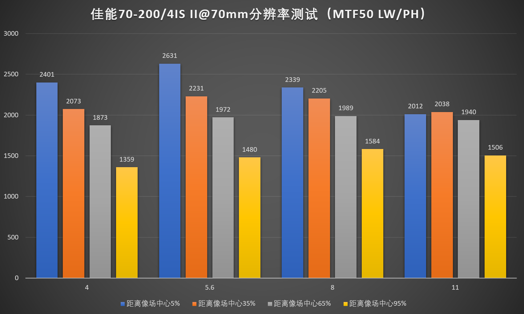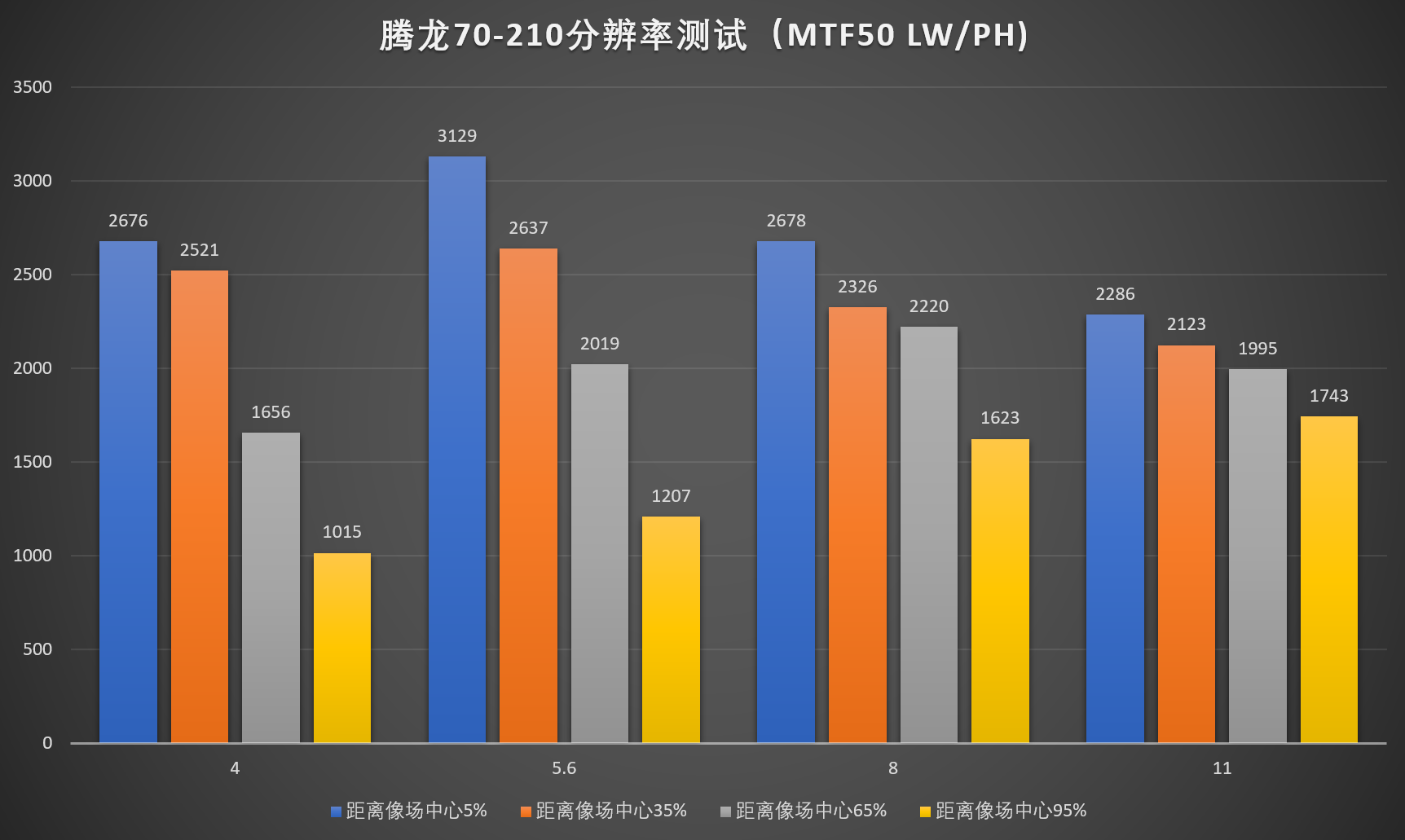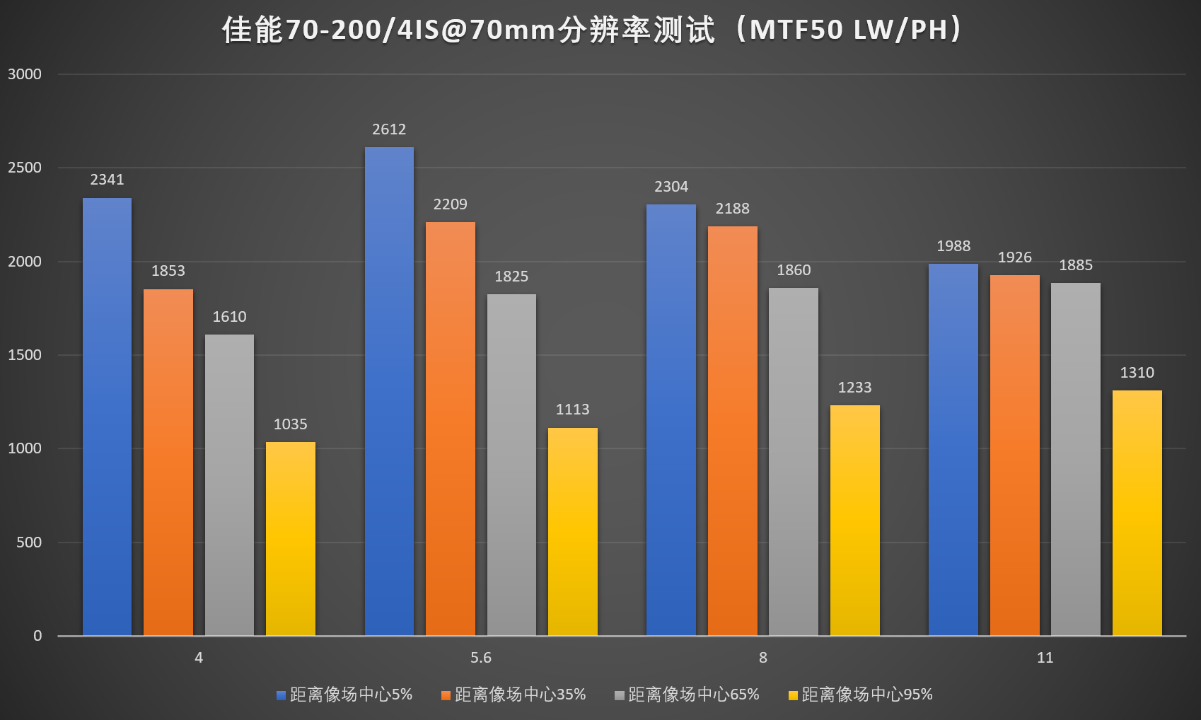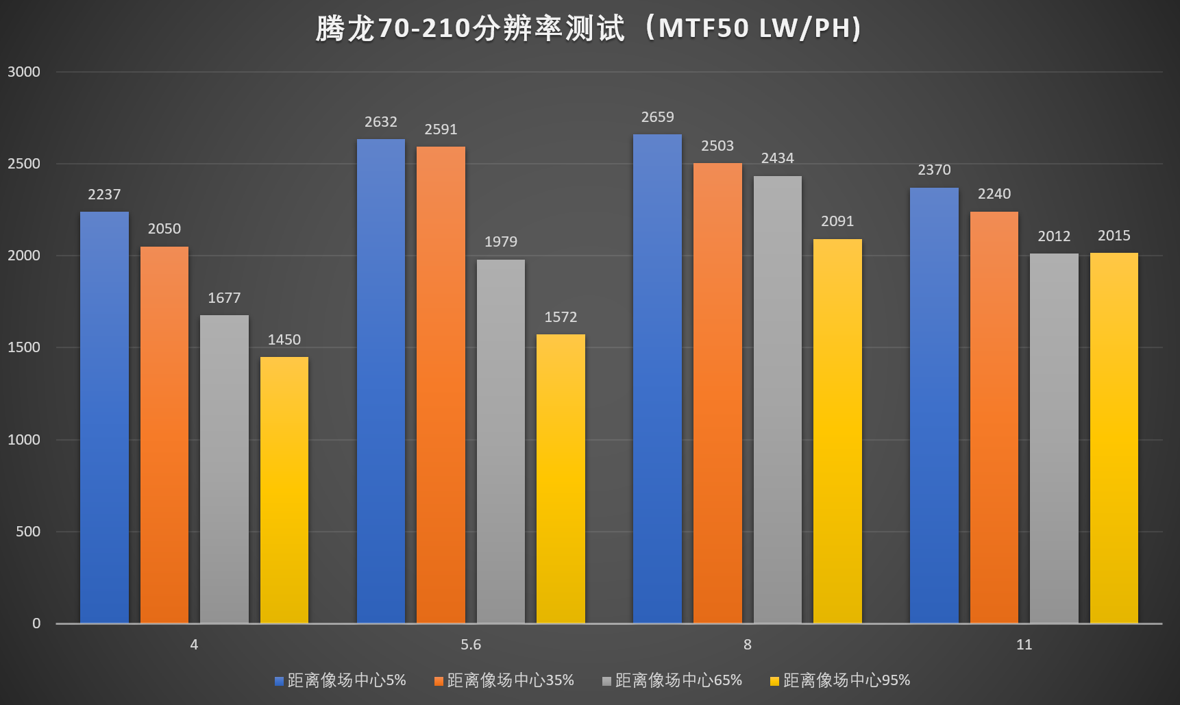 4、由于暗角修正需要的不是镜头的分辨率,而是机身宽容度,故保留此项测试。