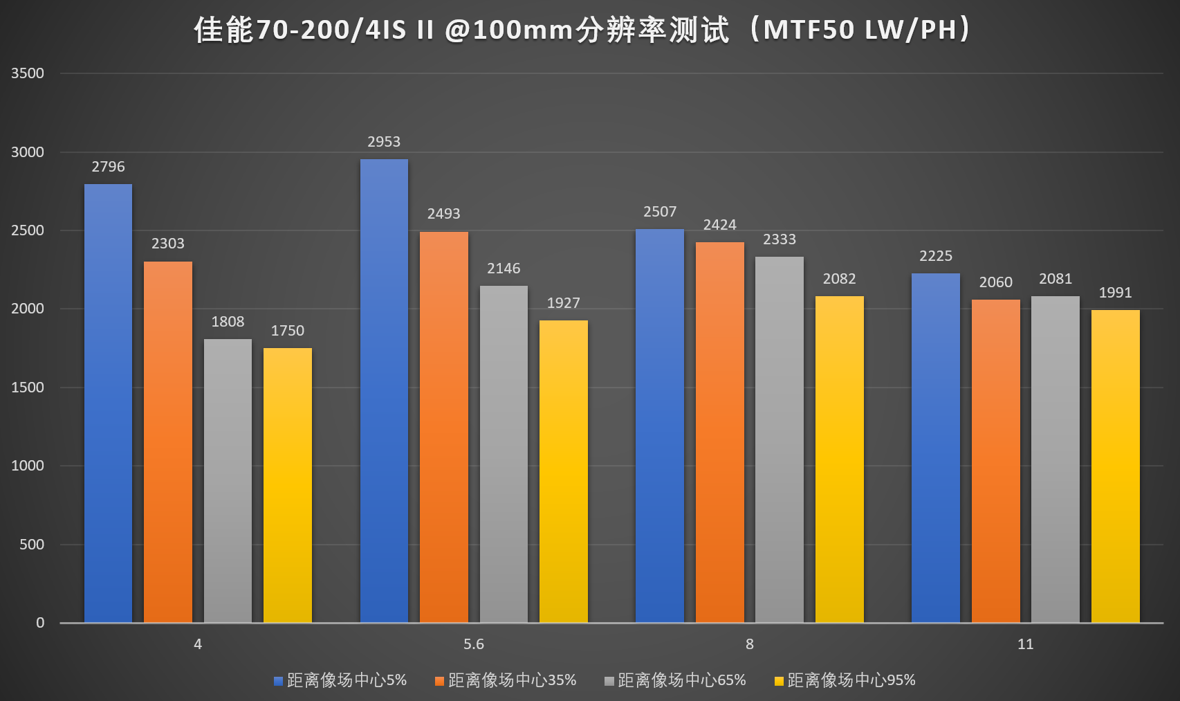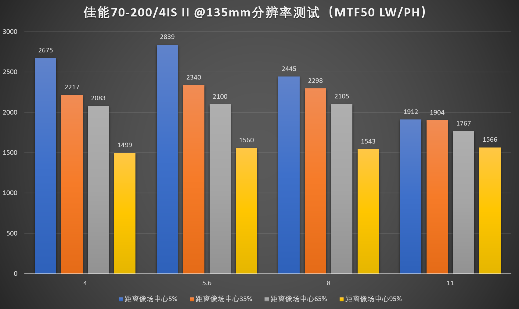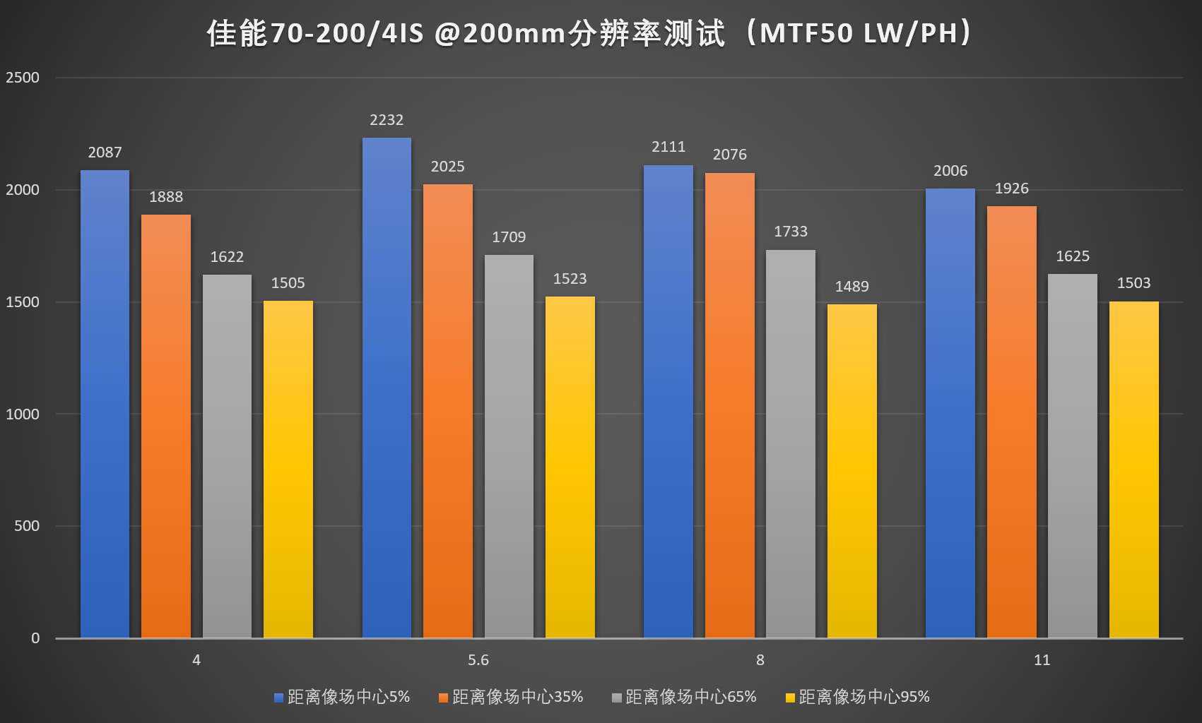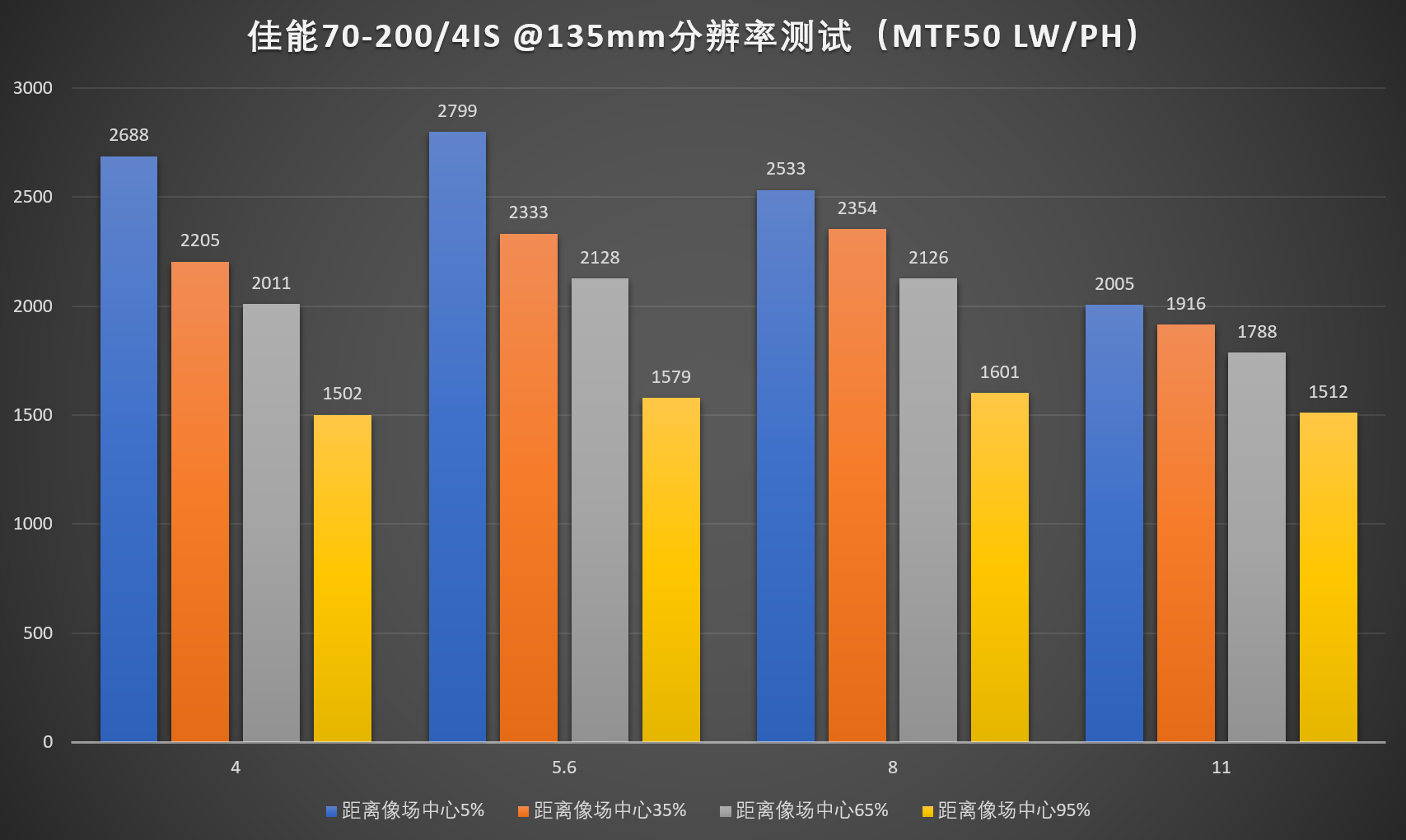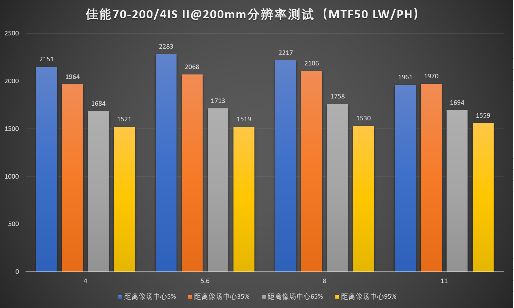 4、由于暗角修正需要的不是镜头的分辨率,而是机身宽容度,故保留此项测试。