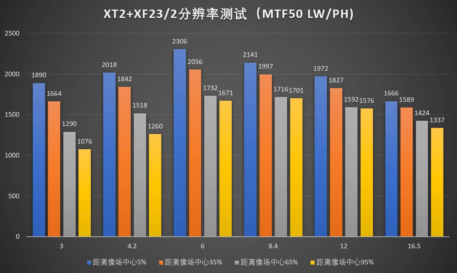 特别的,X-T2+XF 23/2的最佳等效光圈是f/6(物理f/4),而X100F的最佳等效光圈是f/8.4(物理f/5.6)。