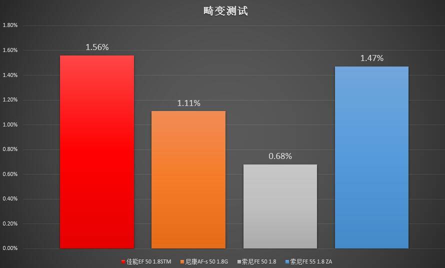 索尼FE50 1.8的畸变控制最好,而佳能50 1.8STM畸变控制相对不佳。不过畸变对于现在数码时代的拍摄流程来说,无非就是点一下校正按钮的事情,影响并不大。