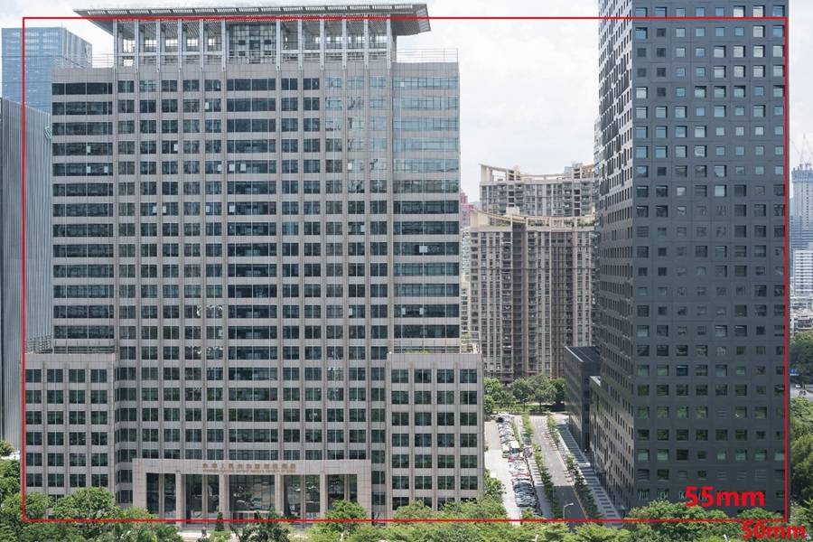 焦距方面,佳能、尼康的镜头和索尼FE 50/1.8是50mm,而FE55采用的是55mm这个略显奇怪的规格——不过它们实际的视角差异如图所示(框线内为55mm),使用起来可能不会有明显区别: