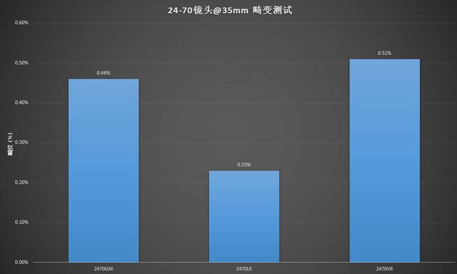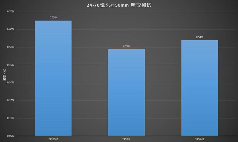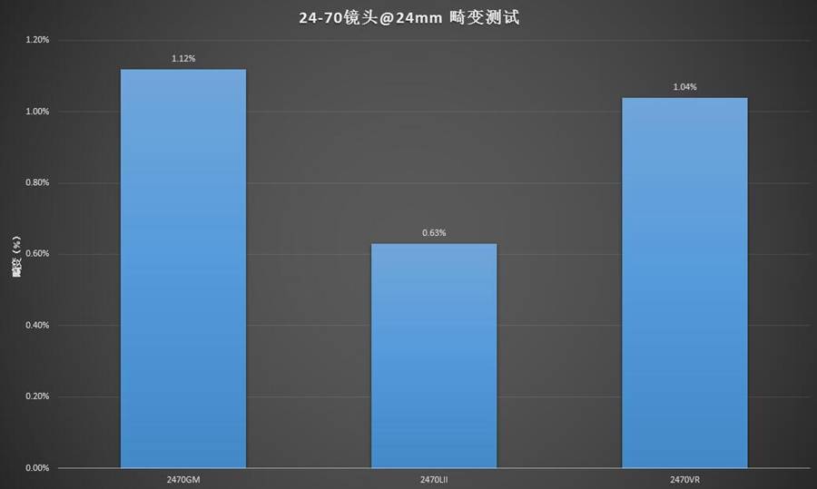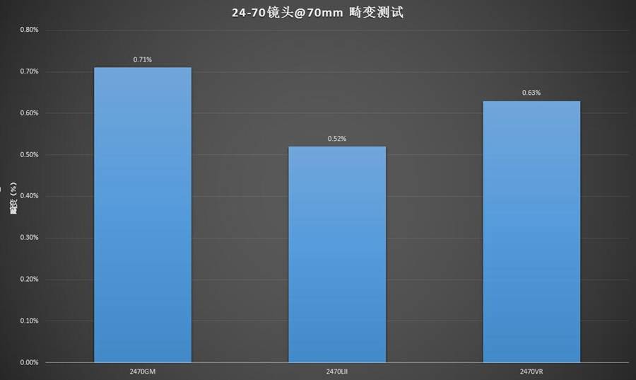 ▲ 畸变控制依然是24-70LII最好。24-70VR略好于24-70GM。