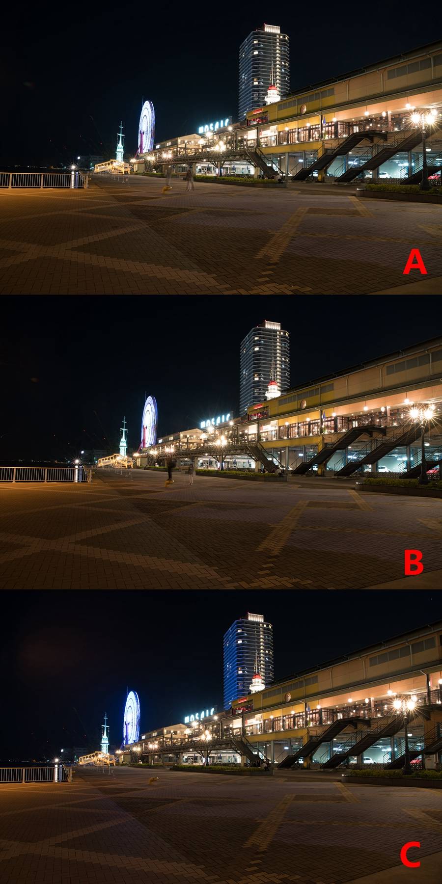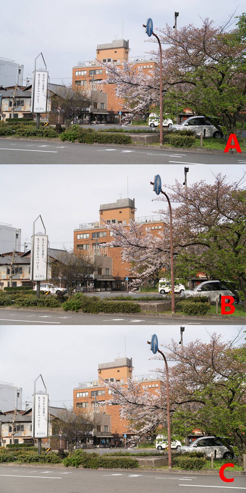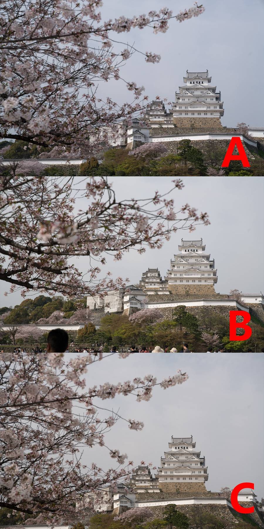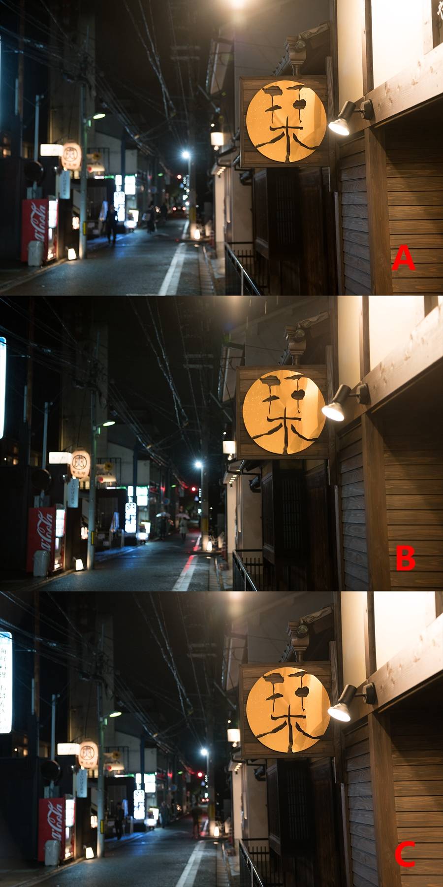 ▲ A:佳能24-70LII;B:索尼24-70GM;C:尼康24-70VR。