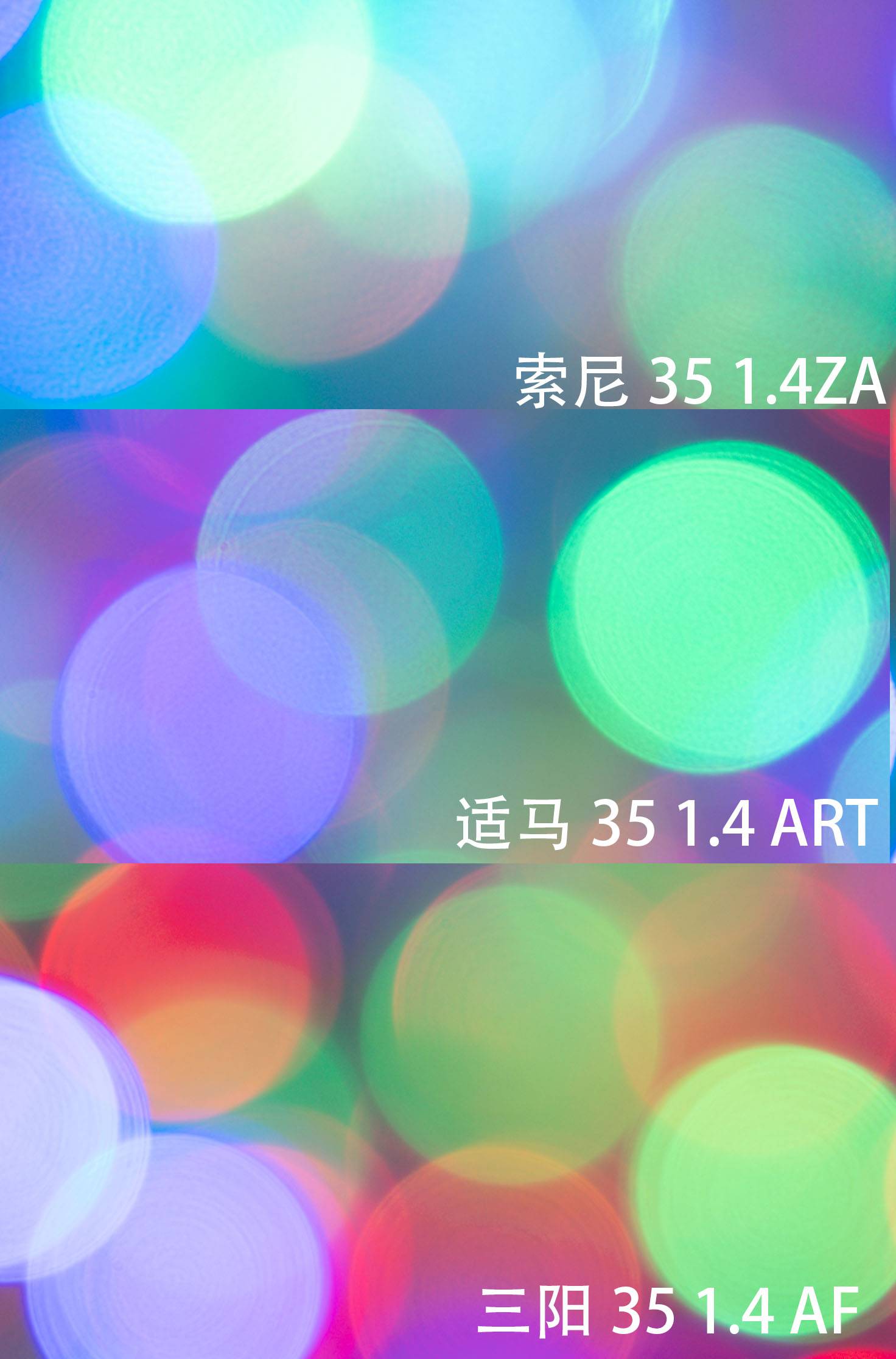 焦外光斑方面洋葱圈表现相近,但是适马35 1.4ART的虚化明显比较硬,三阳中规中矩,整体最好的是35 1.4ZA。