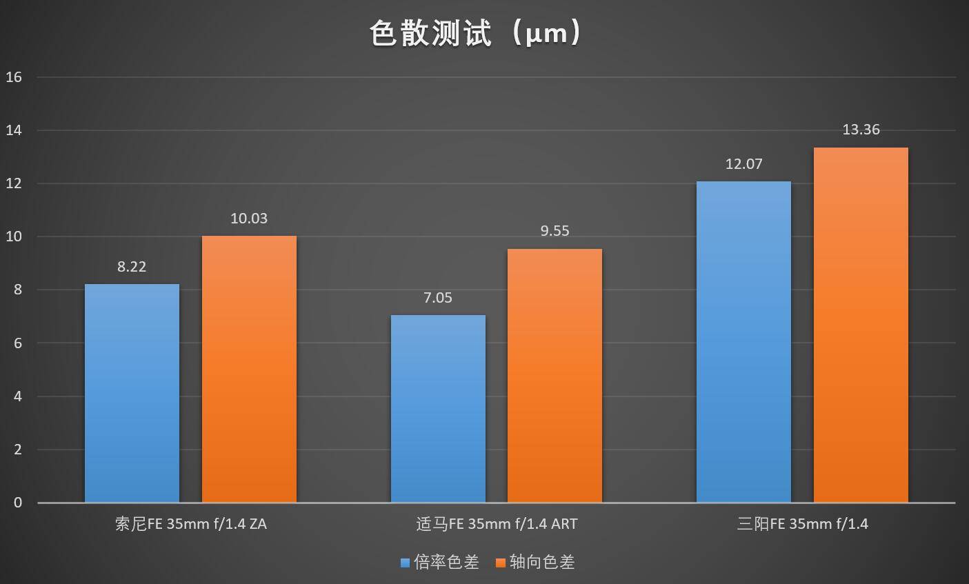 色散控制方面适马同样好于原厂,而三阳的表现则令人不太满意。