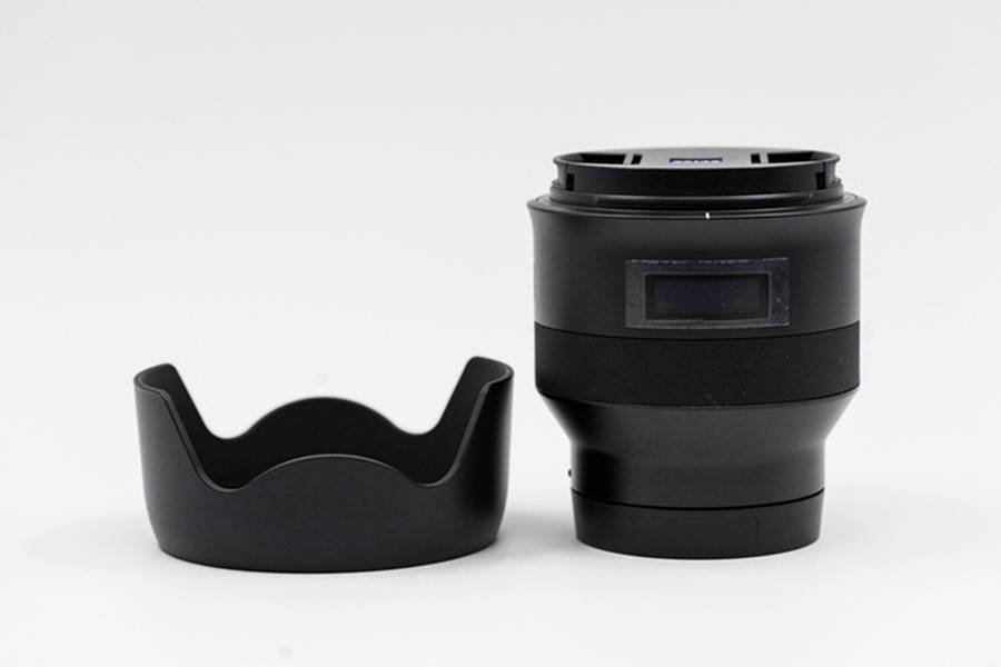 采用了与同门85/1.8不同的莲花形遮光罩,跟广角镜头的契合度更好。