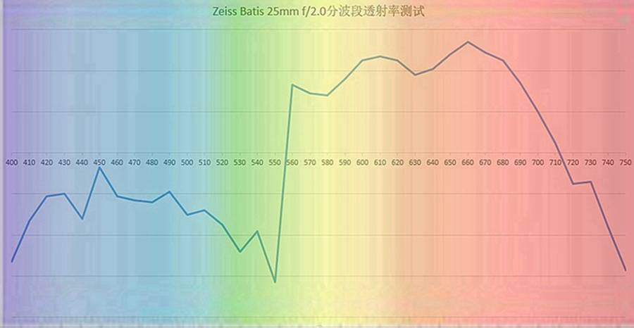 1、分色透射率(镜头色彩倾向)测试