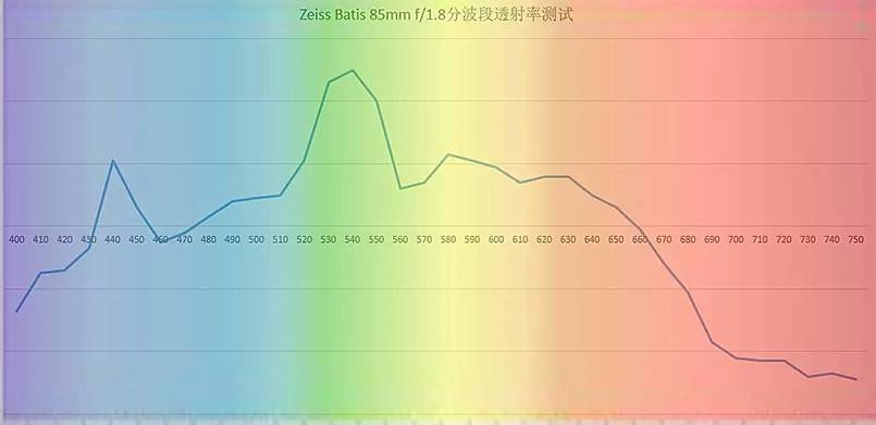 表现。不过由于透射率测试得到的图表只是一个相对值,不能确定色彩偏差的幅度究竟有多少。还需要等待日后的实拍测试。