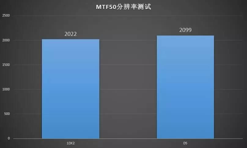 分辨率佳能 1DX2与尼康 D5成绩几乎相同,二者具有几乎相同的像素和低通滤镜强度,有这样的表现并不意外。
