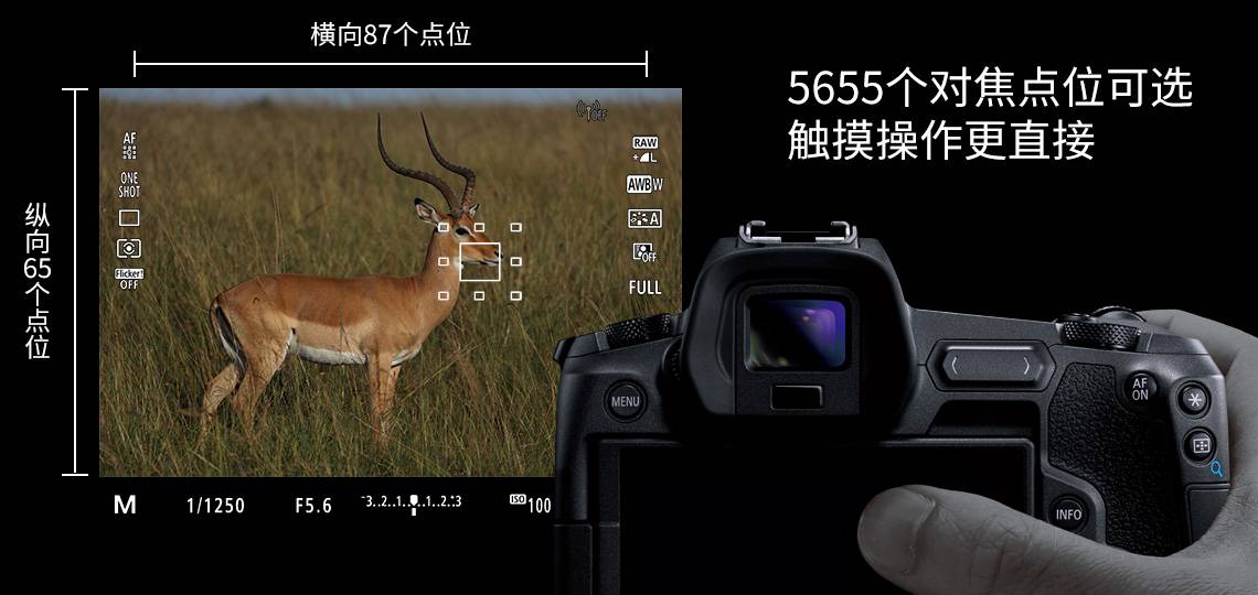 对焦:相位检测的覆盖范围比6D2、5D4、1DX2更大(需要镜头支持)。支持F11光圈相位检测对焦(比如100-400加2X增距镜)。提供自动对焦在内的6种对焦区域选择模式。支持眼部优先AF,但只能在单次对焦时使用。