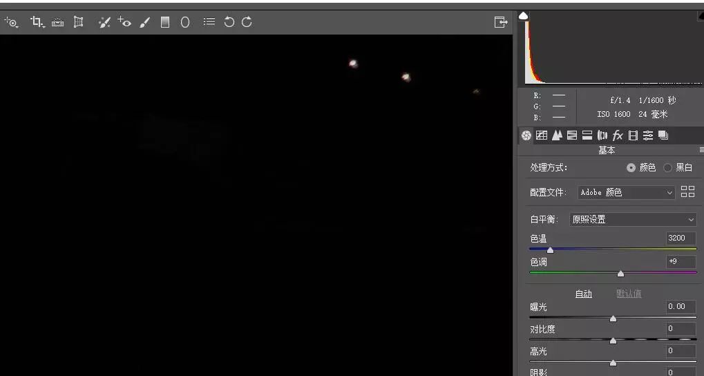 △截图位置:画面最右上角。参数如图(f/1.4)。200%放大