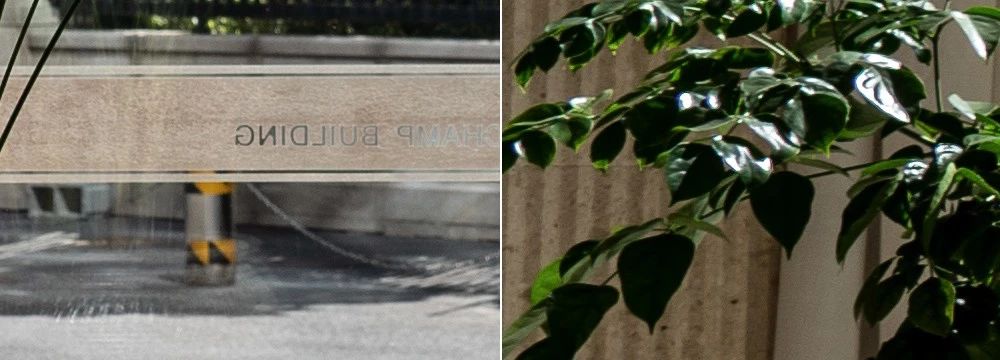 按照以往经验,G大师镜头的最佳分辨率在光圈F5.6左右,截取上图中的中心和边缘,看一下实拍的画质表现。