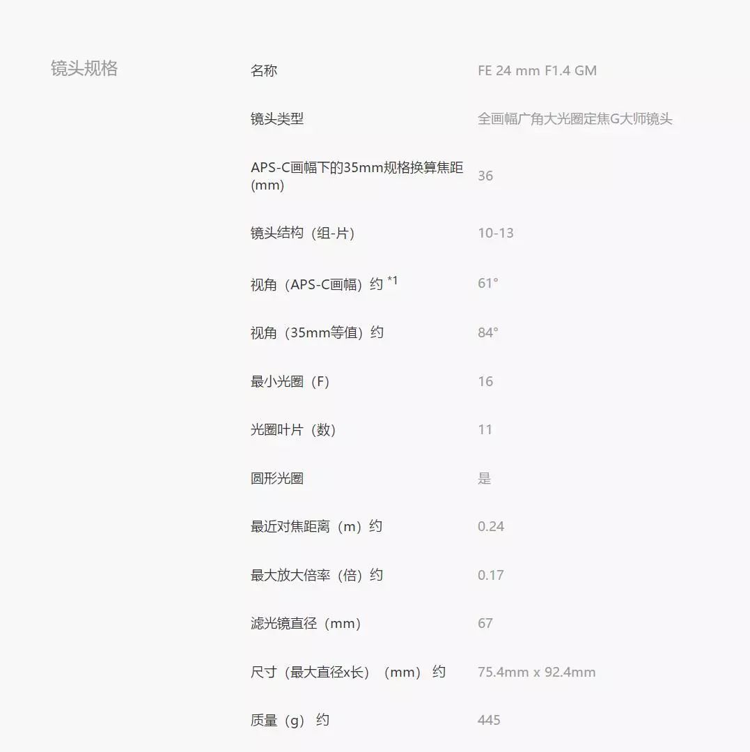 索尼FE 24mm f/1.4GM的通光量为:T1.68