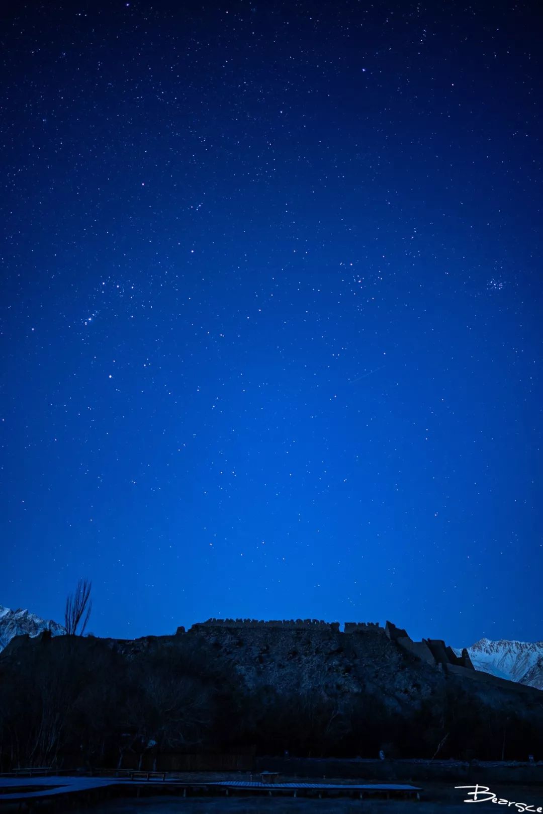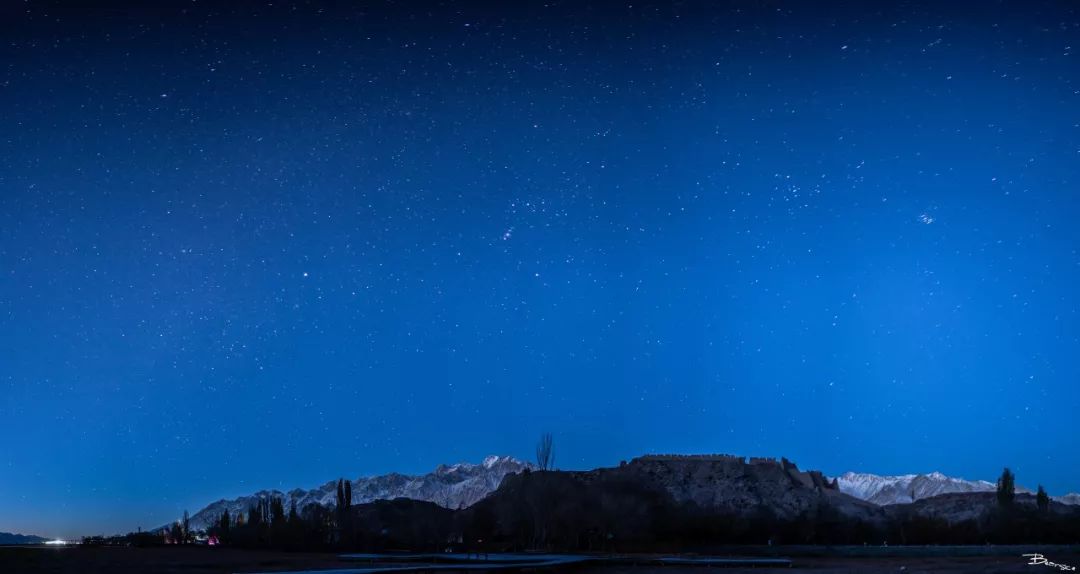 我国幅员辽阔,北京时间早8点时内地天已大亮,但当时正处西部边陲的塔县居然还有星空可以拍。拍摄地点也很好找,就是石头城下面的一片金草滩,修葺好的木栈道还可以当做拍摄时的前景。