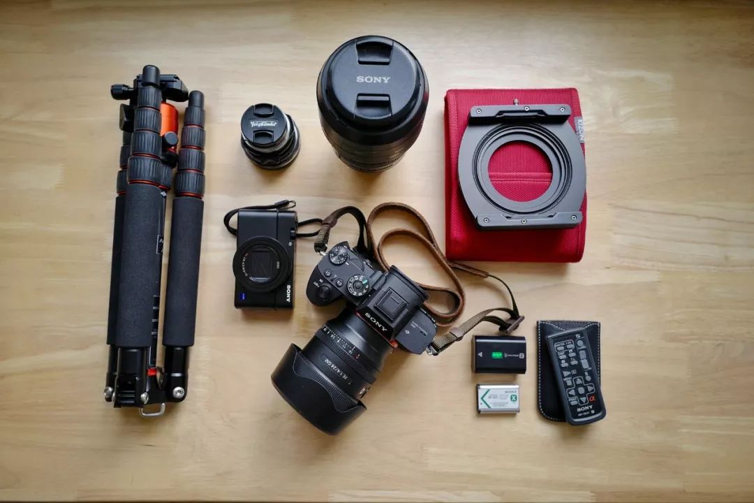 工欲善其事必先利其器,一周的外拍装备还是要提前准备好的。以下就是我这次外拍携带的全部器材了:一台索尼A7RM3机身、FE 24mm F1.4 GM、FE 70-300mm F4.5-5.6 G OSS;一台RX100 VI黑卡;一支福伦达的35mm F1.4手动镜头;滤镜、脚架、存储卡、快门遥控器等。