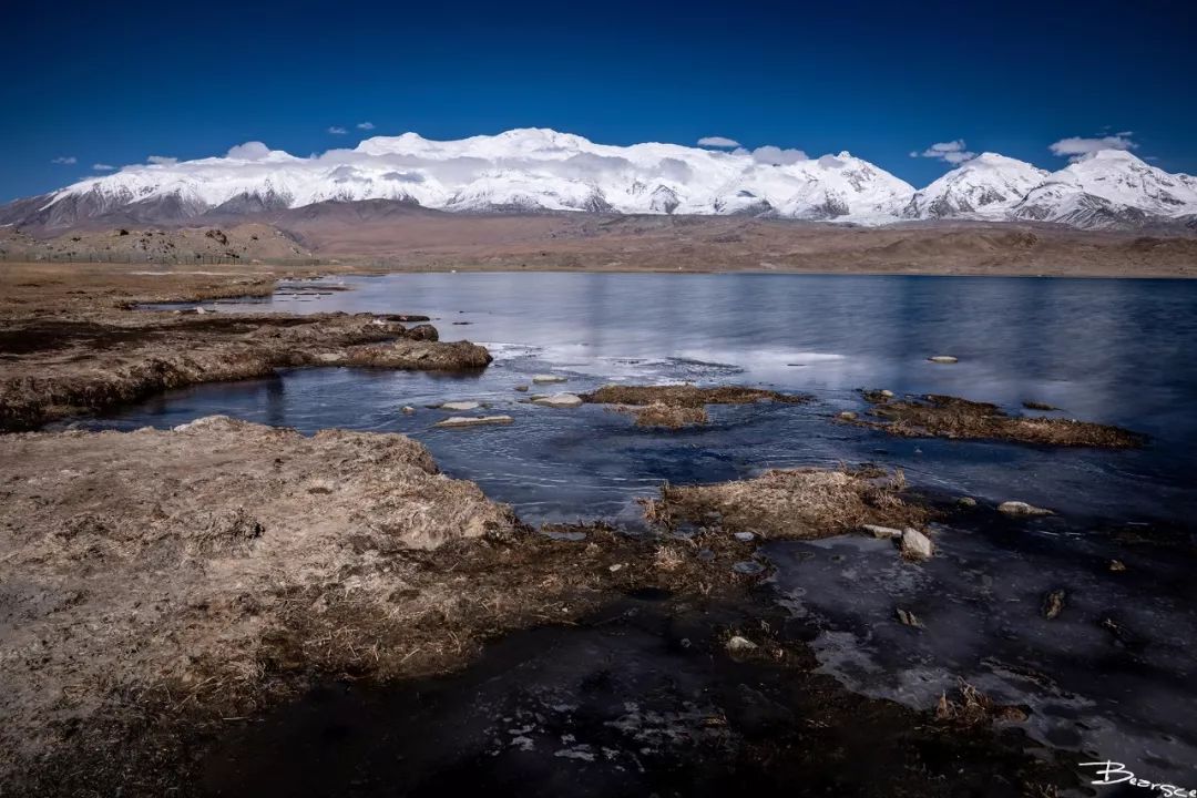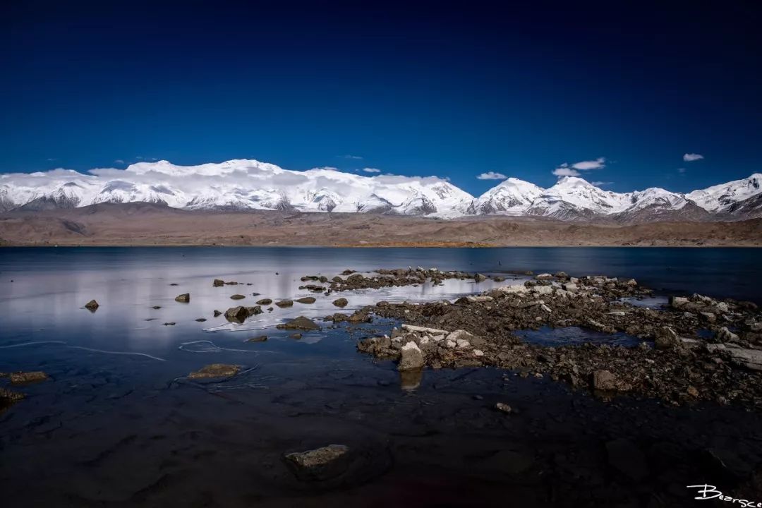 继续南下就到了另一个拍摄地卡拉库里湖。此地位于冰山之父——慕士塔格峰的山脚下,已经距离喀什191公里。“卡拉库里”是“黑海”的意思,这是一座由高山冰蚀形成的冰碛湖。G314国道从湖畔经过,购票即可进入。