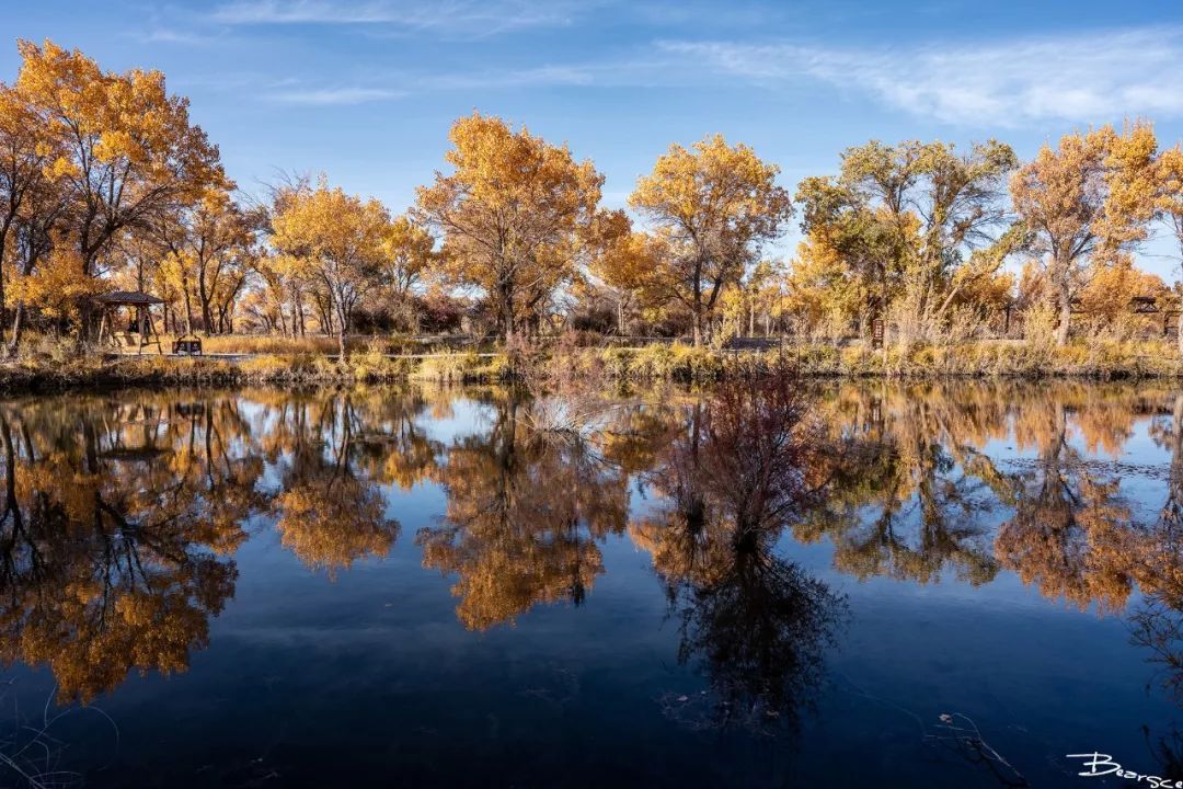 拍摄完毕从塔县返回喀什,休整之后我们再次驱车期望第二大拍摄地点泽普县的金湖杨景区。泽普金湖杨国家森林公园位于县城西南40公里的戈壁深处,坐落在叶尔羌河冲积扇上缘,三面环水,景色宜人。