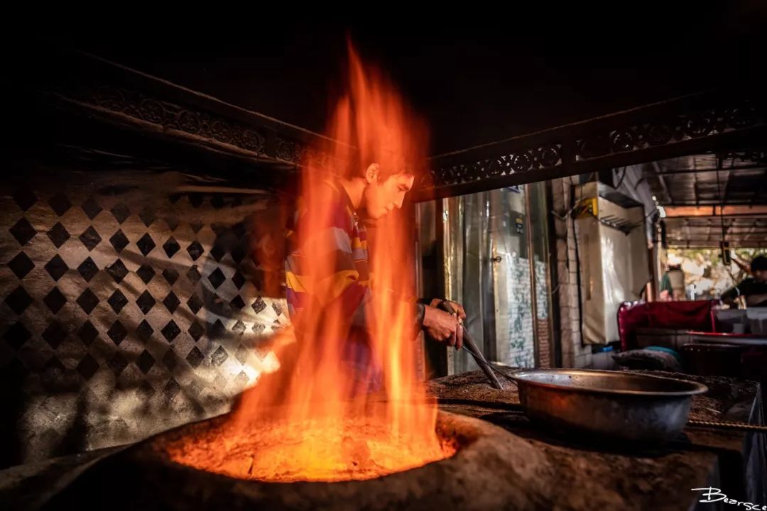 最先引起我注意的,其实是馕坑的那团火焰,火光旺盛还在不断变换位置。所以拍摄思路很简单,就是想让火光与少年融为一体。拍摄时适当降低了快门速度,让火焰舞动的姿态更舒展。同时采用了低角度构图,让人物与火焰重叠。利用眼控AF锁定被摄者,多试拍几张基本就可以找到不错的瞬间。