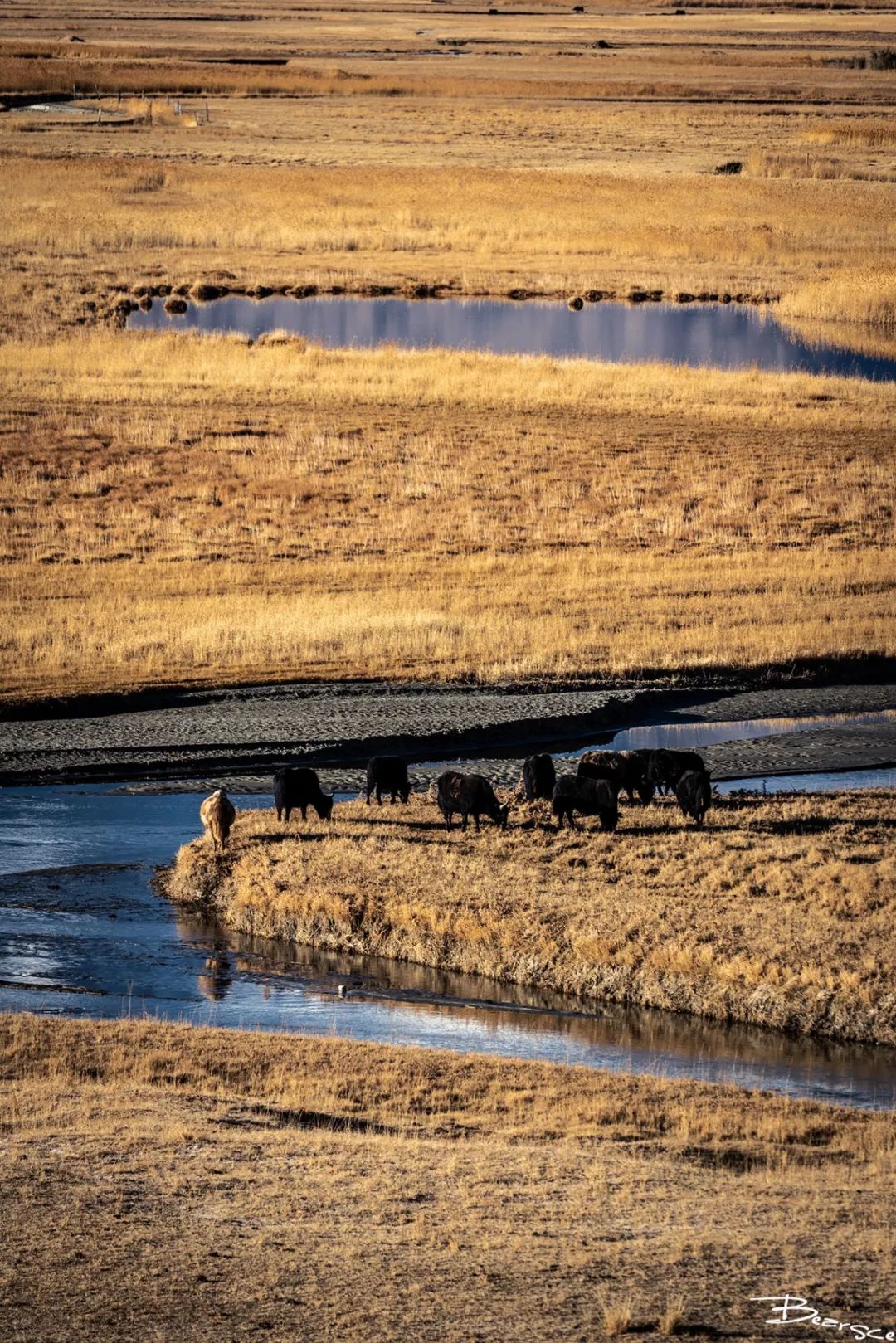 事实证明这个思路也是正确的,在湿地的观景台处使用70mm可以表现整个大环境,300mm正好可以拍到牦牛并且不用剪裁。