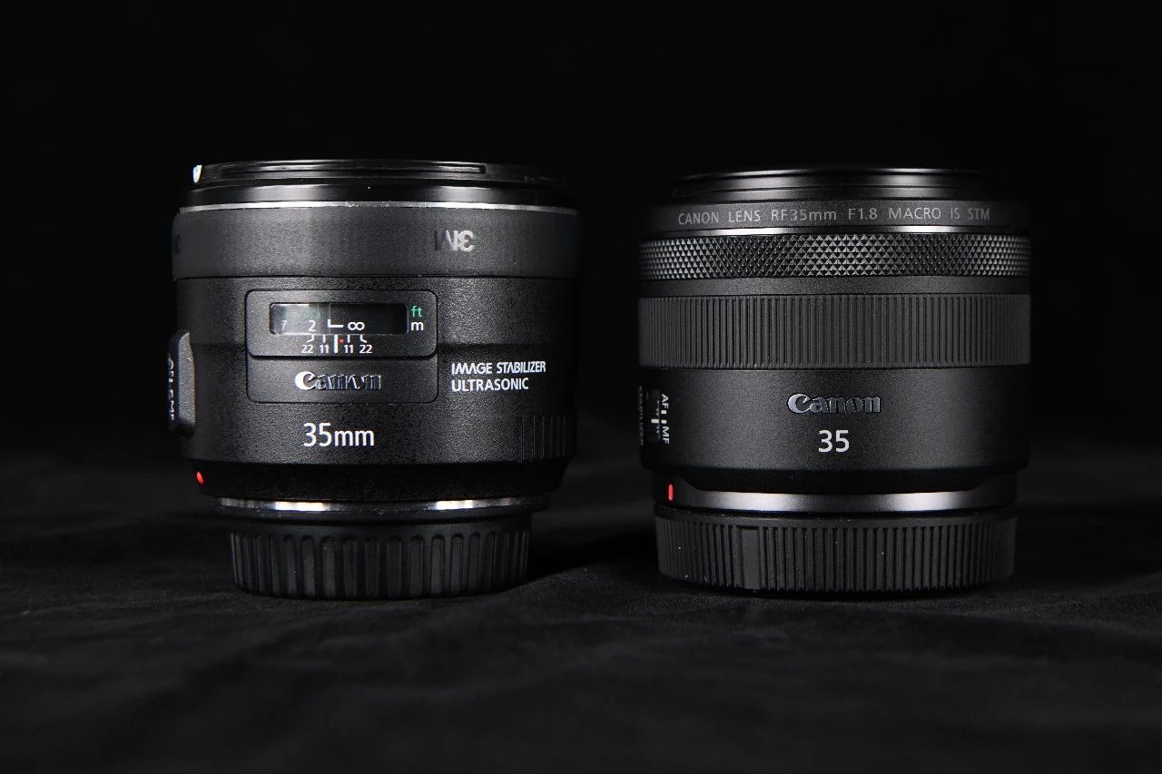 体积方面RF 35 1.8跟早些时候EF卡口的35mm f/2基本一致,但EF版本是完全的内对焦结构,也没有微距功能。