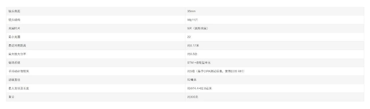 佳能RF 35mm f/1.8 Macro IS STM的通光量(T值)为:T2.12