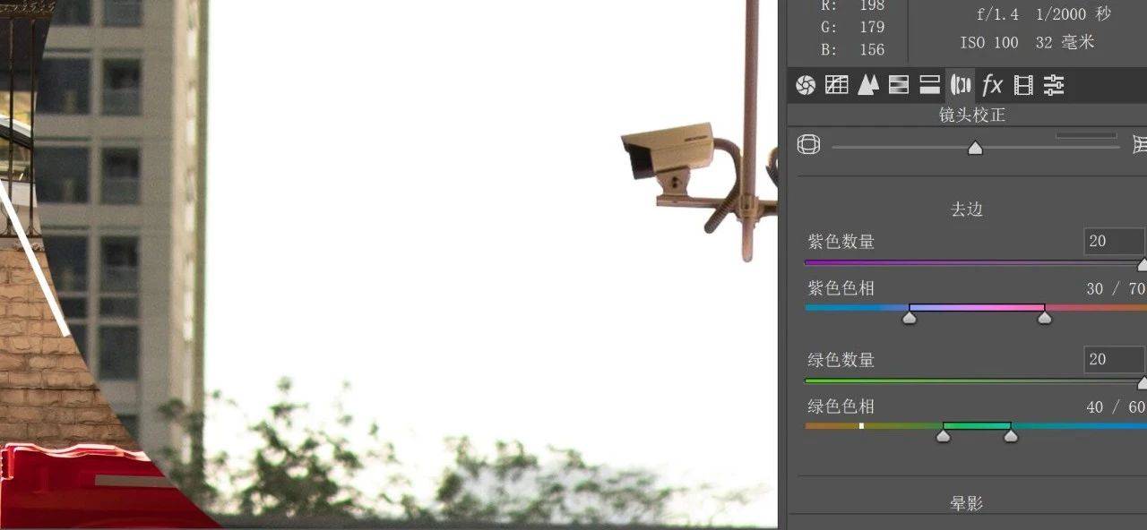 首先要批判一番这个轴向色散,在逆光大光比拍摄的情况下稍微失焦的区域色散尤为明显,而且这种近紫远绿、混入焦外的色散并不太容易通过ACR之类的软件来简单消除: