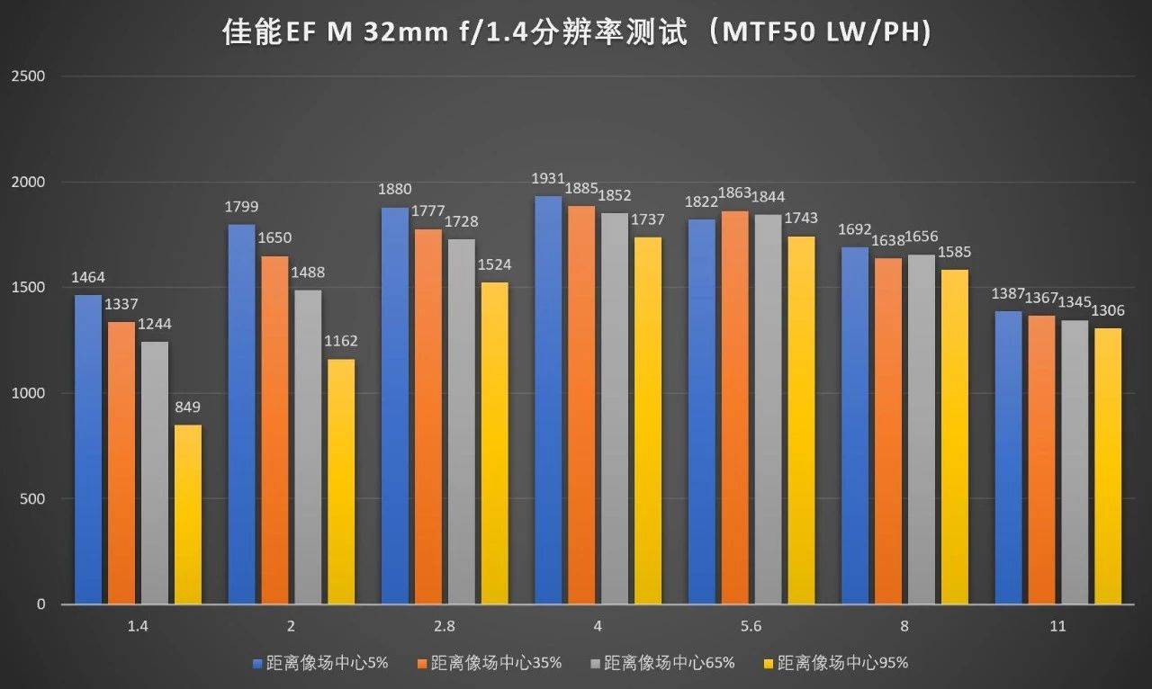 这里的横坐标是物理光圈值,与其它画幅镜头进行比较建议使用等效光圈,也就是在光圈值基础上×1.6。