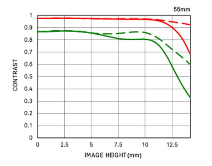 适马56mm f/1.4 DC DN的倍率(焦内)色散数值为:6.84μm(135画幅等效值)