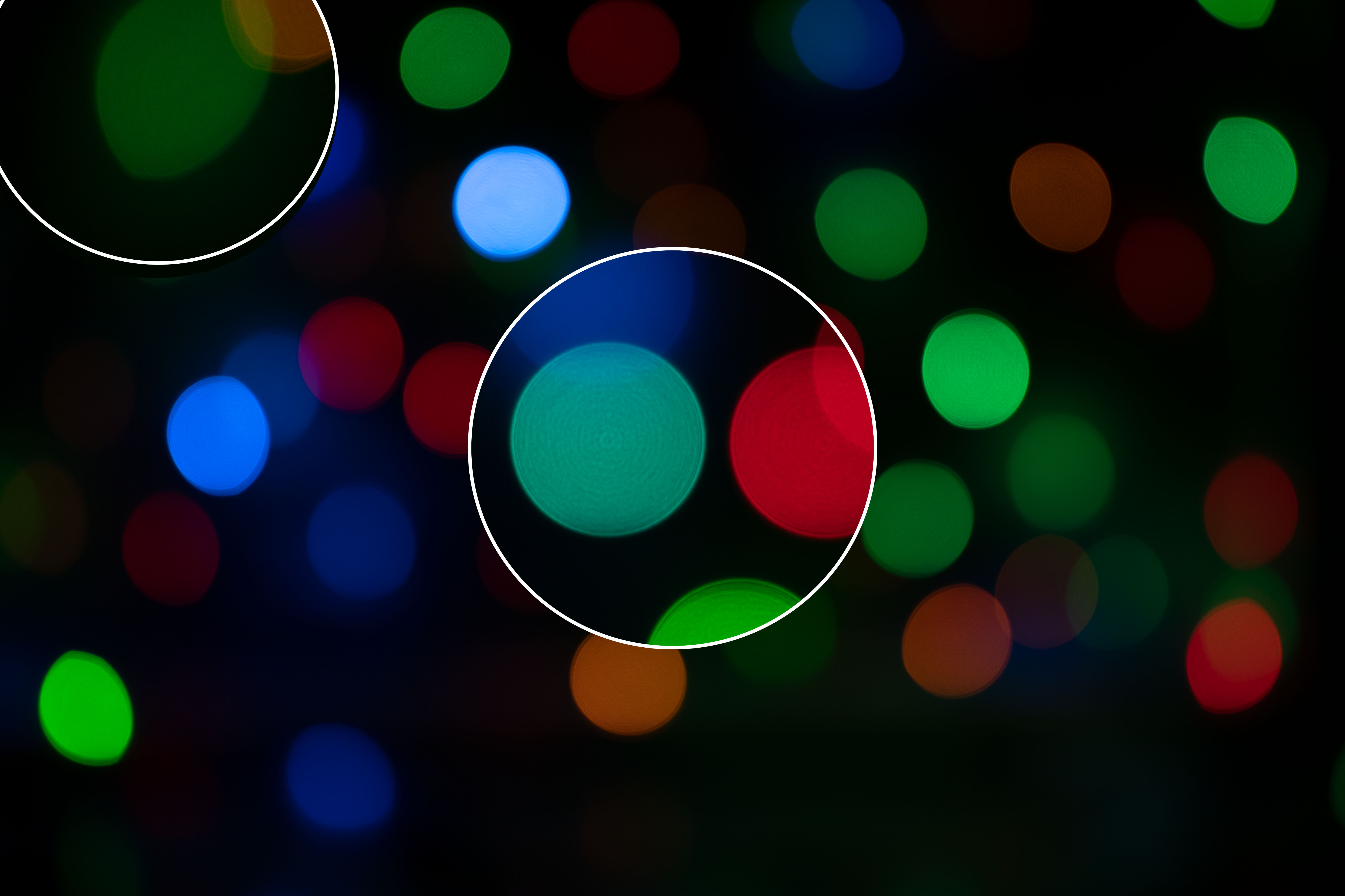 但是实测在对焦距离较远、光源位于近无限远位置、光斑占画面面积较小较集中的时候,某些情况下弥散圆当中会出现比较明显的、方形或菱形的亮斑,而且与机身和画面位置都无关,在某些拍摄的时候需要特别注意:
