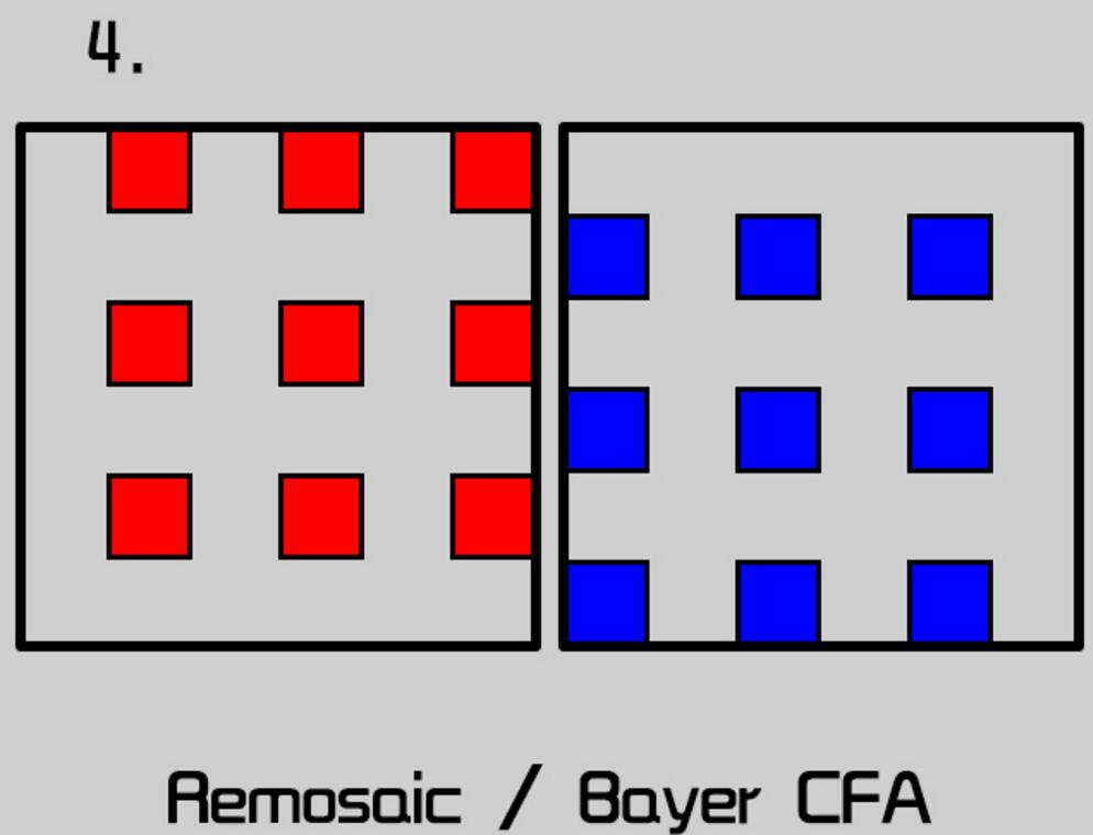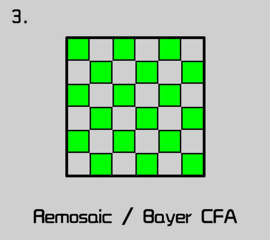 通过某种非四合一Quad-Bayer转Bayer的Remosaic算法我们可以初窥端倪: