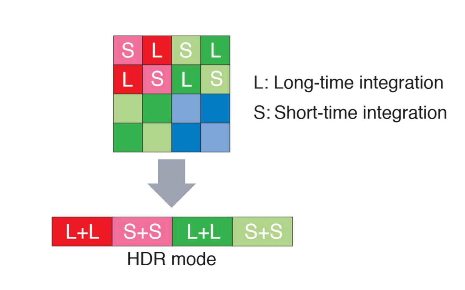 实际上在相机领域Quad-Bayer CFA也不是什么新鲜玩意,之前松下GH5S上的IMX294就是一块m43尺寸的Quad-Bayer CMOS,但目前相机领域的Quad-Bayer主要还是为了实现独立曝光时间控制的实时HDR效果,因为相机的ISP和CIS可以一对一选择搭配,对于相机来说实际上不太需要Quad-Bayer转Bayer这种多此一举的东西: