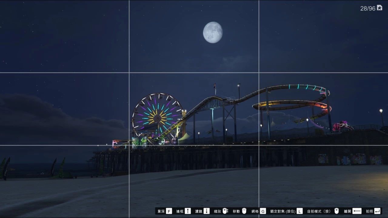 我们也可以从GTA5的拍照模式看出很多手机摄影APP的影子。比如有辅助线九宫格,比如还自带模拟景深功能。不过GTA5的自动对焦是主动对焦到画面重心的,如果要改变构图方式就需要“先对焦再构图”。
