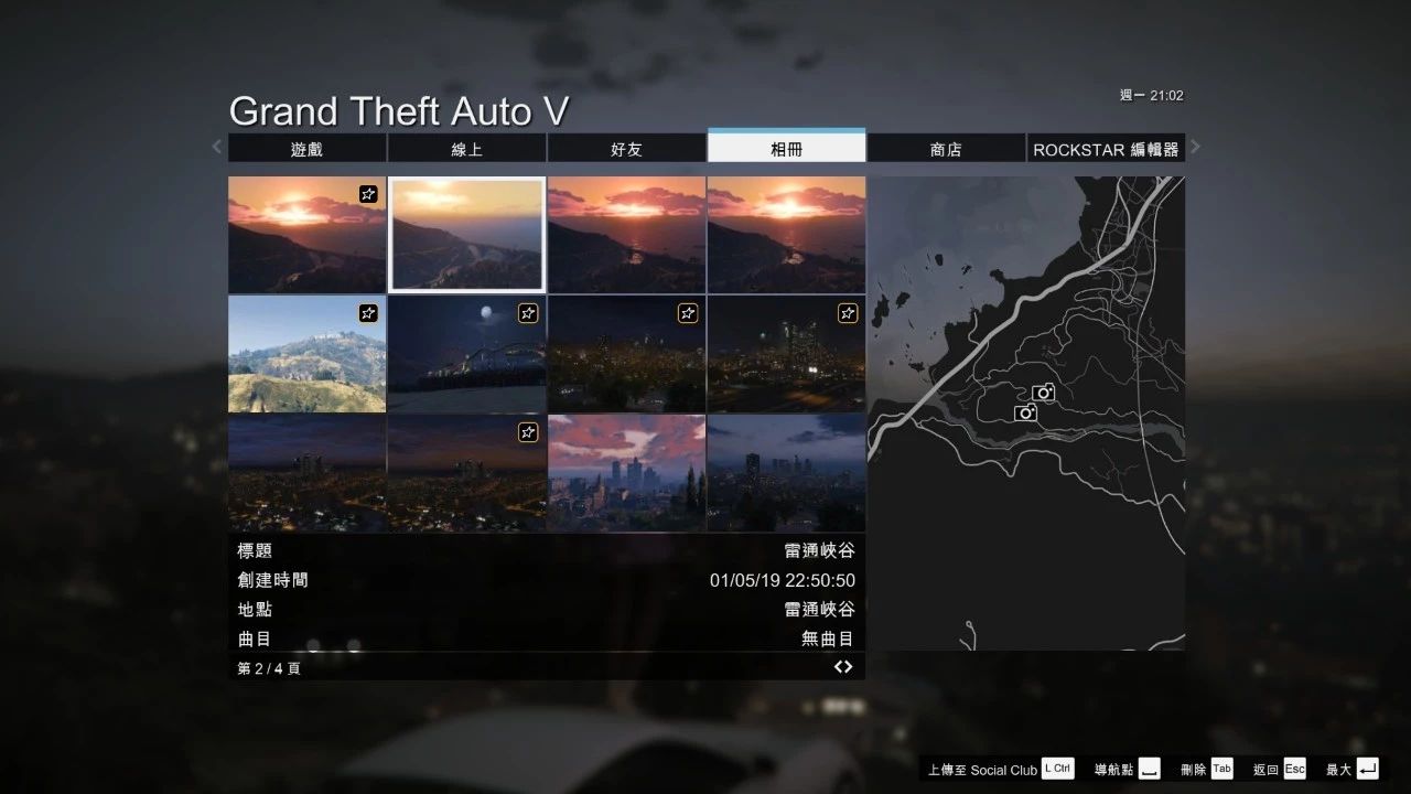 拍摄完的照片可以在游戏菜单中查看,除了照片本身还自带了照片的GPS位置。如果对照片满意的话还可以上传到游戏公司的社交网络,这样我们就可以在游戏外看到拍摄的照片了。