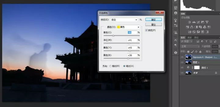 接下来进入可选颜色选项,调整黄色部分,增加色彩的鲜艳程度。