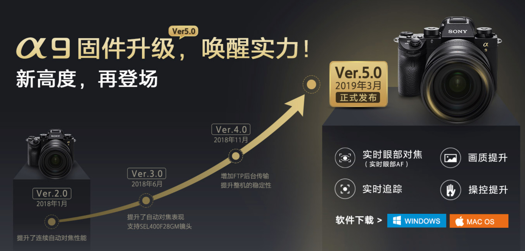 A9的5.0固件升级对相机的对焦系统,操控以及与App的链接功能均进行了升级,主要升级功能如下: