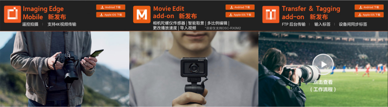 原有的PlayMemories Mobile软件更新为Imaging Edge Mobile,最大的特点是可以直接传输4K视频,另外针对A9还有一款“Transfer & Tagging add-on”软件,这款App面向专业摄影师,通过FTP传输与加标记功能,加快静态图像传输工作流的速度。