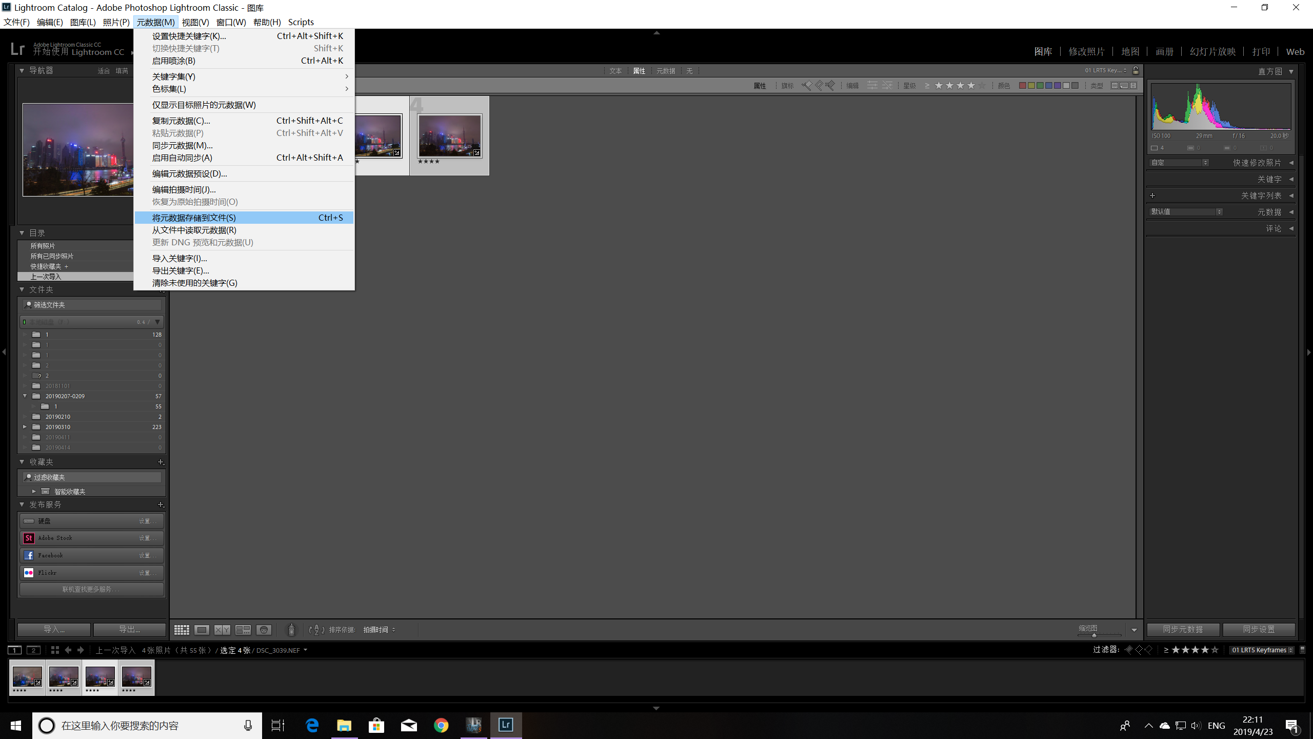 完成关键帧的修图后我们按一下G回到图库,ctrl+A全选所有关键帧,点击元数据——将元数据存储到文件。