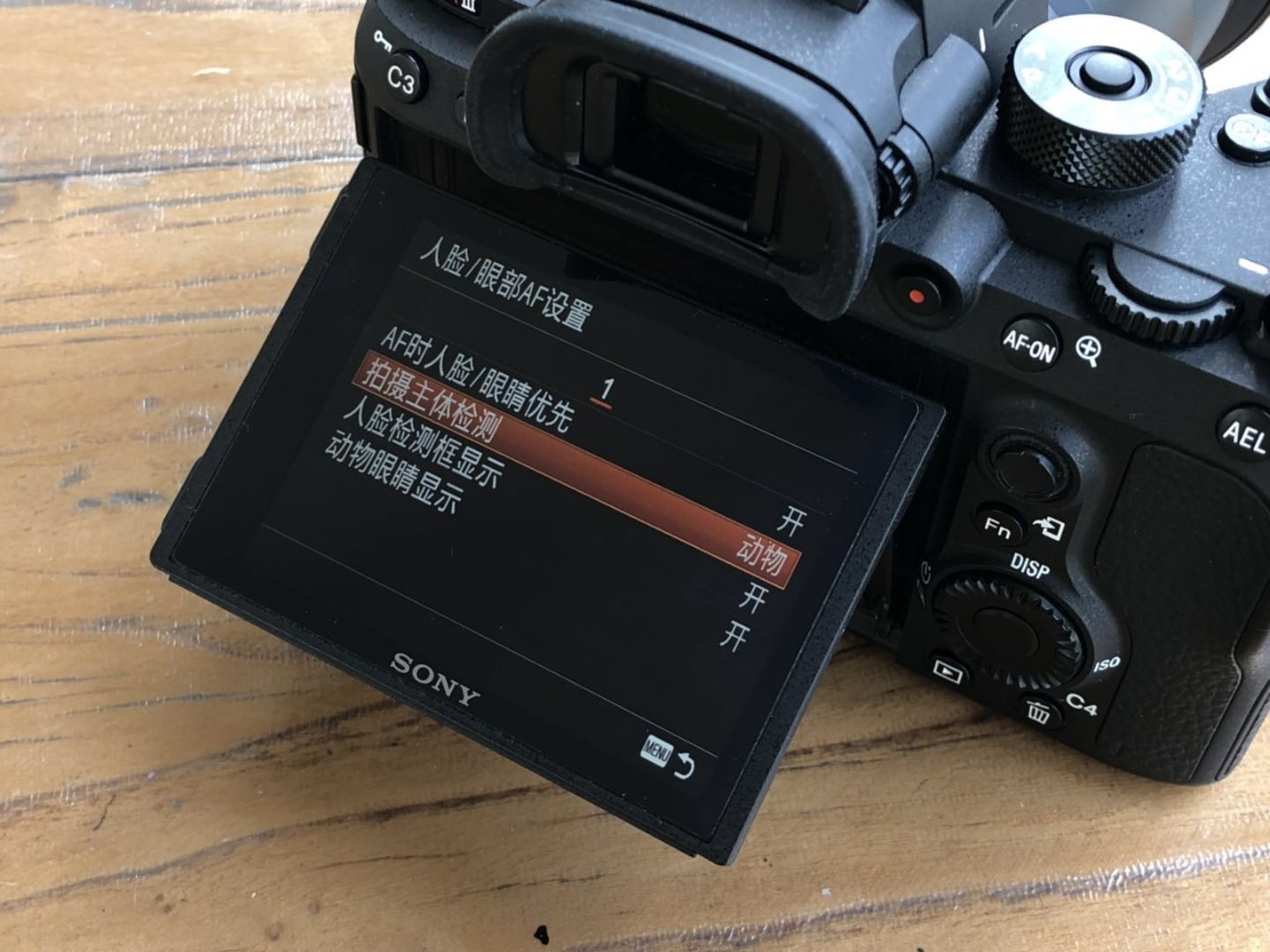 本次体验所用的拍摄机型是A7RM3,在固件升级后,我们要在菜单中开启这个功能。这个功能在“人脸/眼部AF设置”的子菜单中,需要把“拍摄主体检测”切换为“动物”。