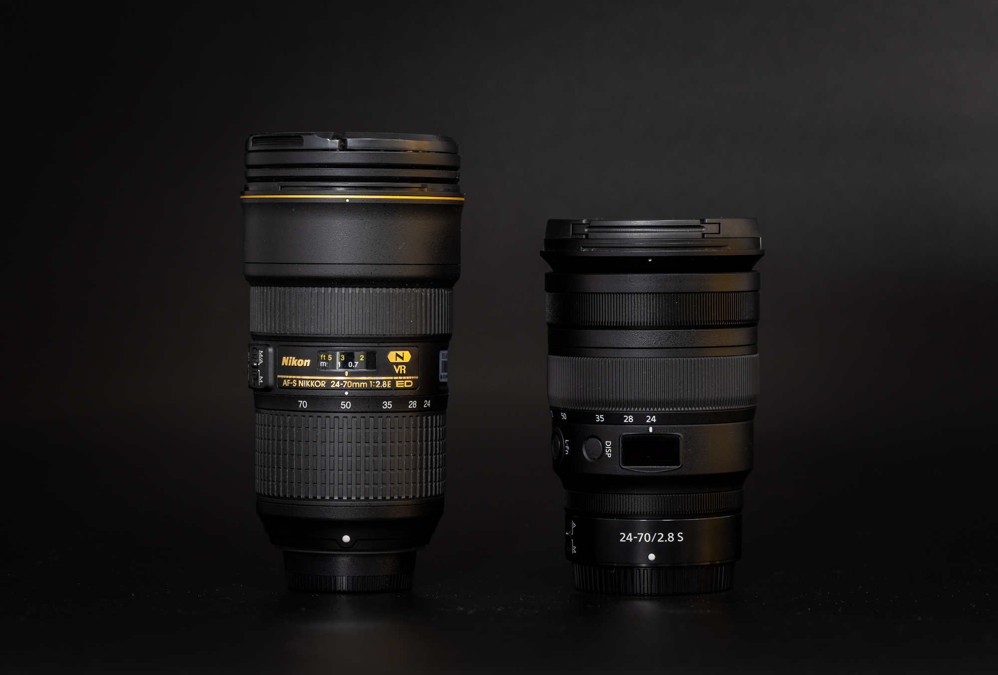 都伸到最长时依旧是Z 24-70/2.8 S更短一点,此时的焦距分别为24mm和70mm。