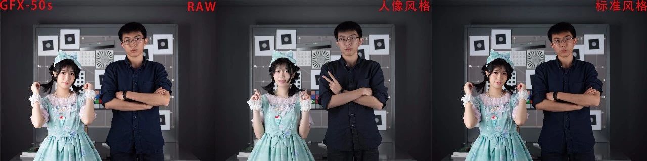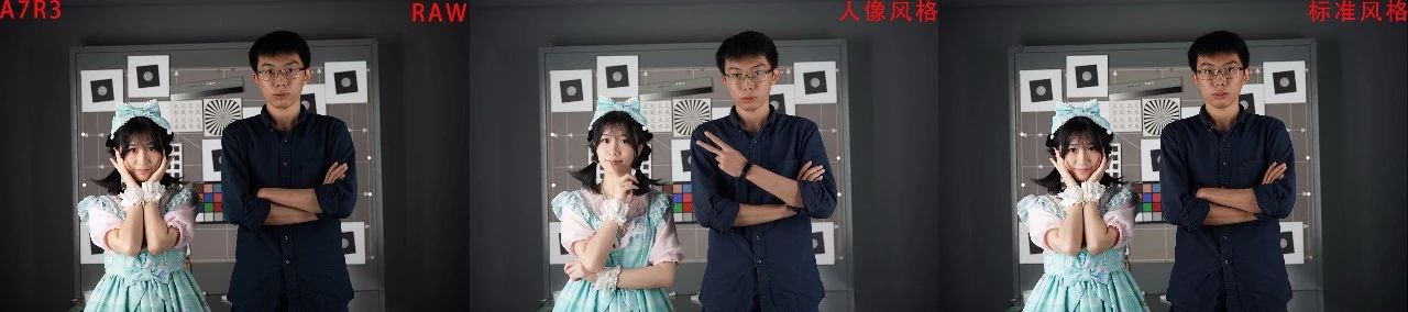 拍摄设置是初始化相机之后,把图像风格调为标准,A档,不调整曝光补偿。因为各家相机的测光倾向也是“玄学”的原因之一,我们决定保留这种倾向的差异。同时,这种设置也是大部分玩家实际拍摄人像时候的选择,强制要求M档定死曝光,色卡定死白平衡的做法,就跟用MTF扫描仪测试镜头一样虽然变量控制精准但是严重脱离实际应用。
