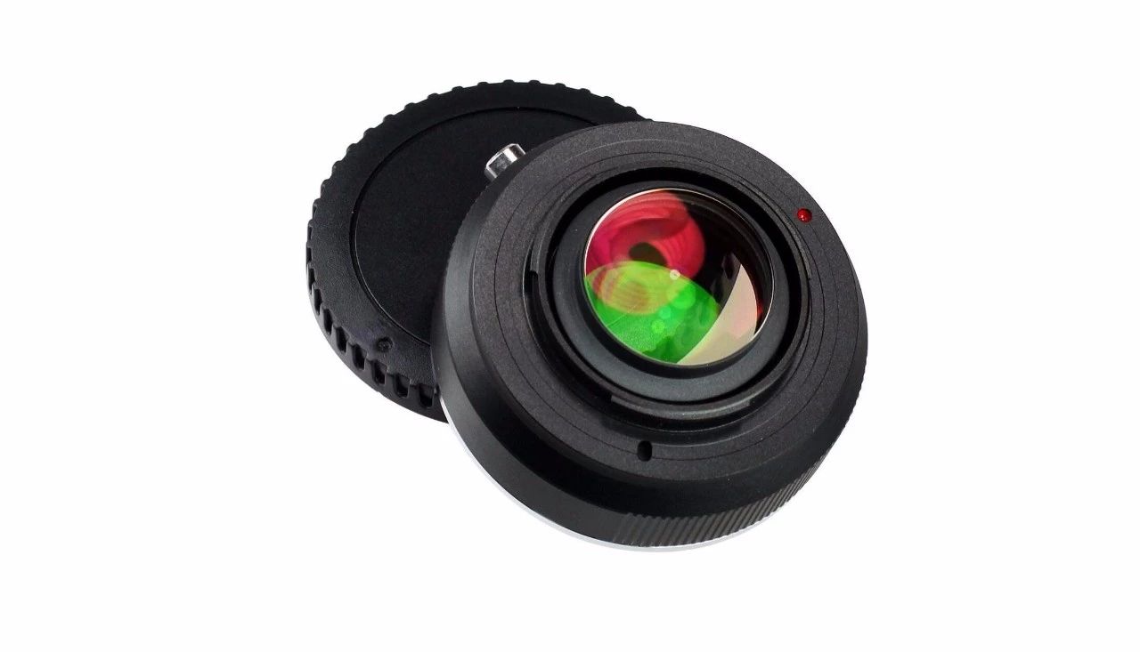 到了现在的微单时代,微单卡口的法兰距相比单反卡口的法兰距有20mm以上的差值,这个差值已经可以容许除了电子部分之外塞进一定的光学组件,实现各种各样的转接骚操作。大家最熟悉的应该就是减焦环——让APS-C画幅相机体验全幅虚化和弱光性能的利器: