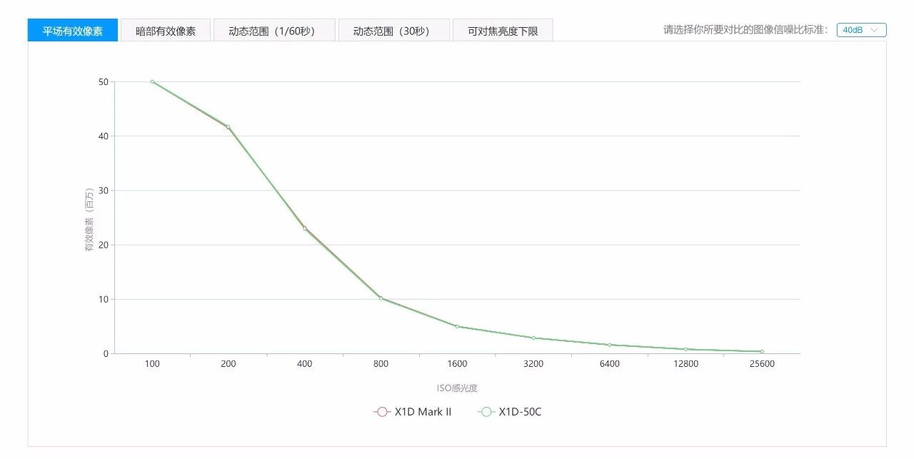 在误差限度之内可以认为X1D II 50C与X1D 50C的动态范围表现相同,长曝光下波动会略微大一些。