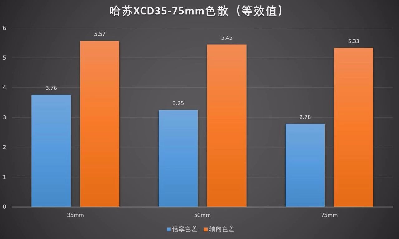 哈苏XCD 65mm f/2.8镜头的倍率色散(等效135mm全画幅)为:4.12μm