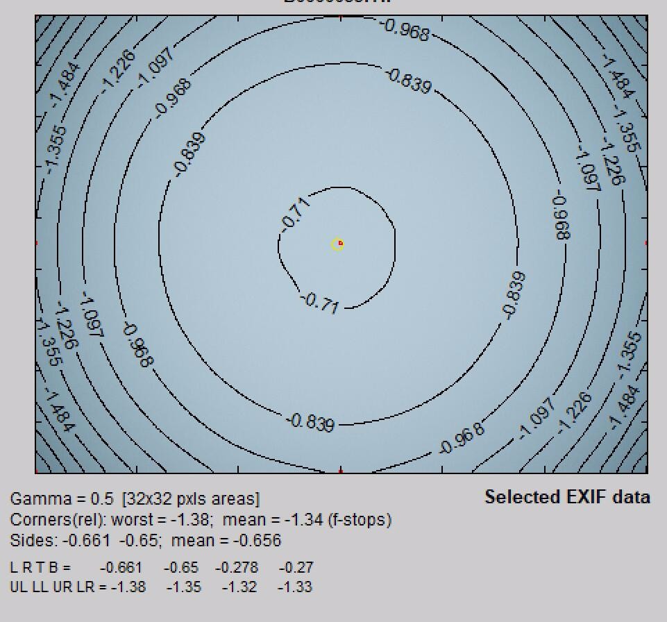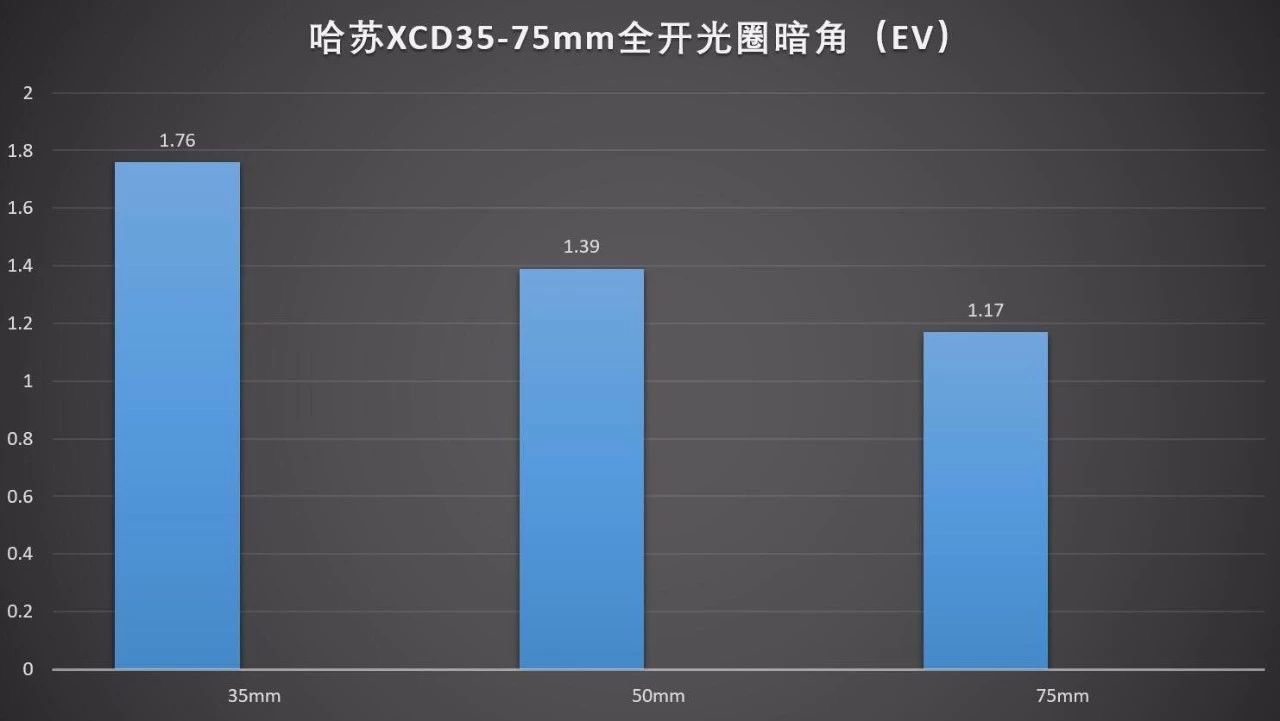 哈苏XCD 65mm f/2.8 的全开光圈暗角为:1.38EV