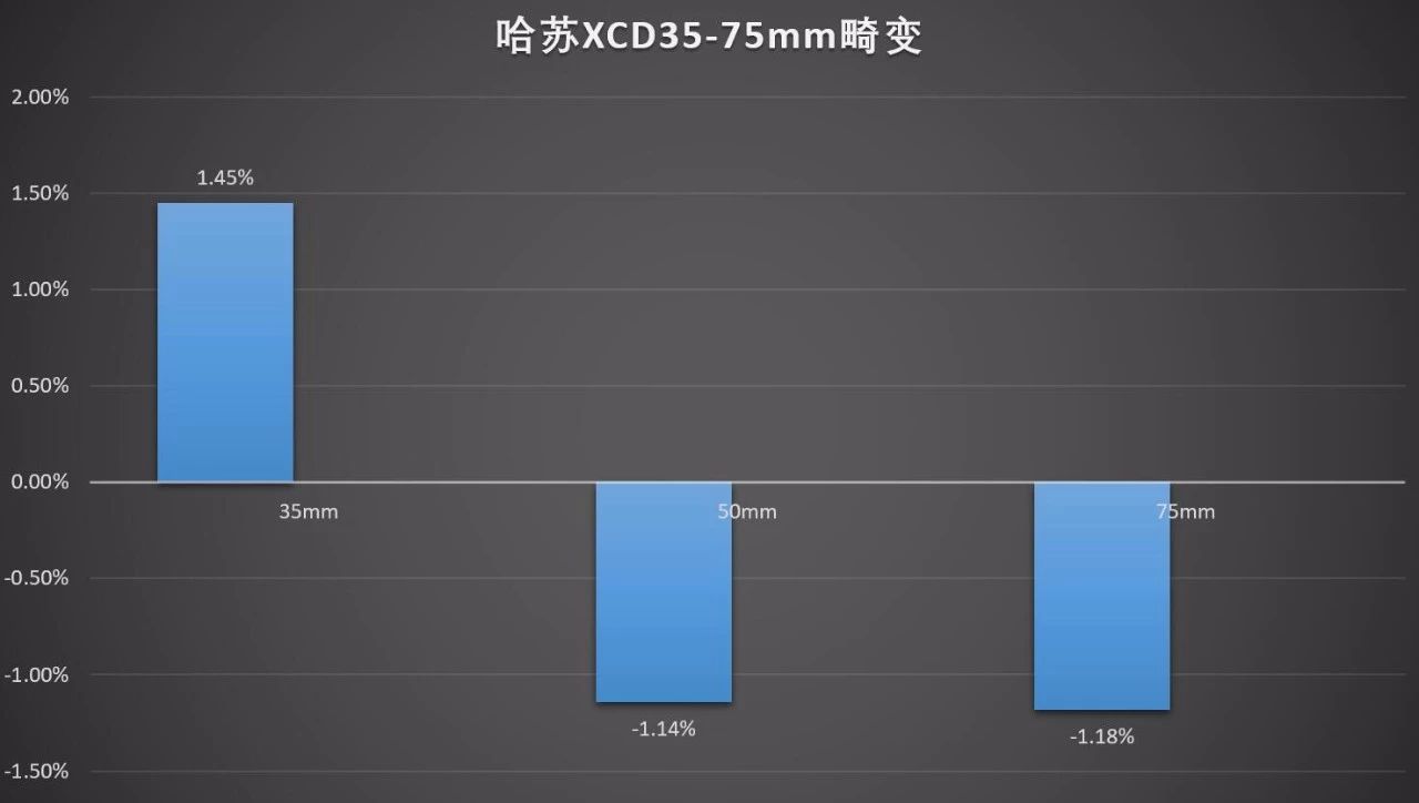 哈苏XCD 65mm f/2.8的畸变为:0.156%,肉眼不可见。