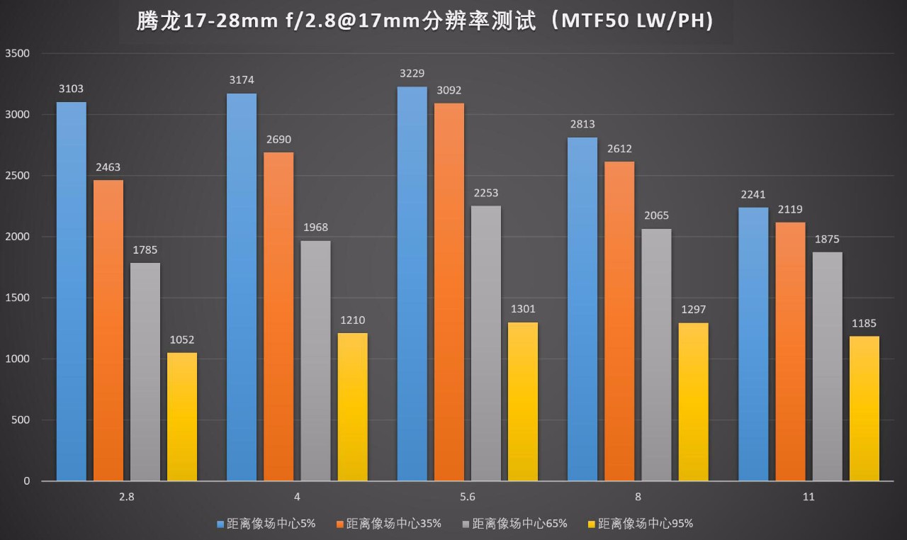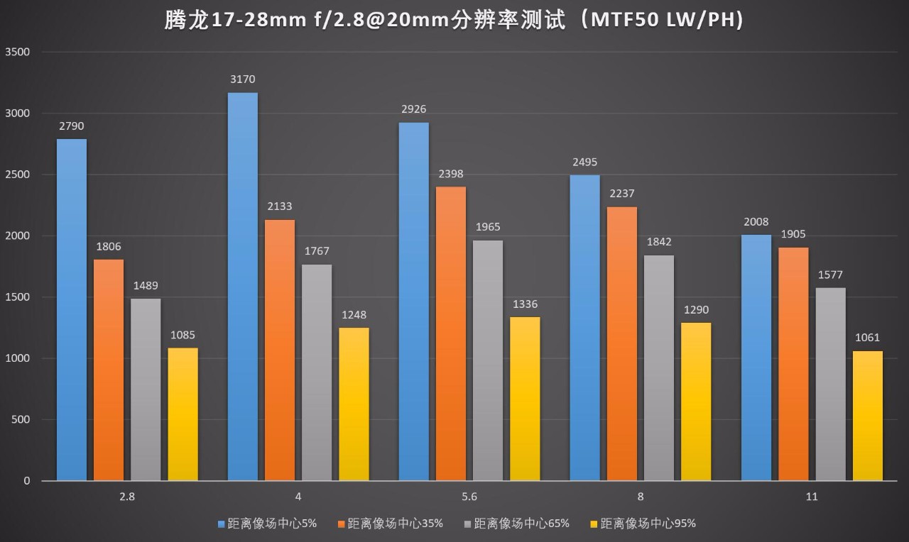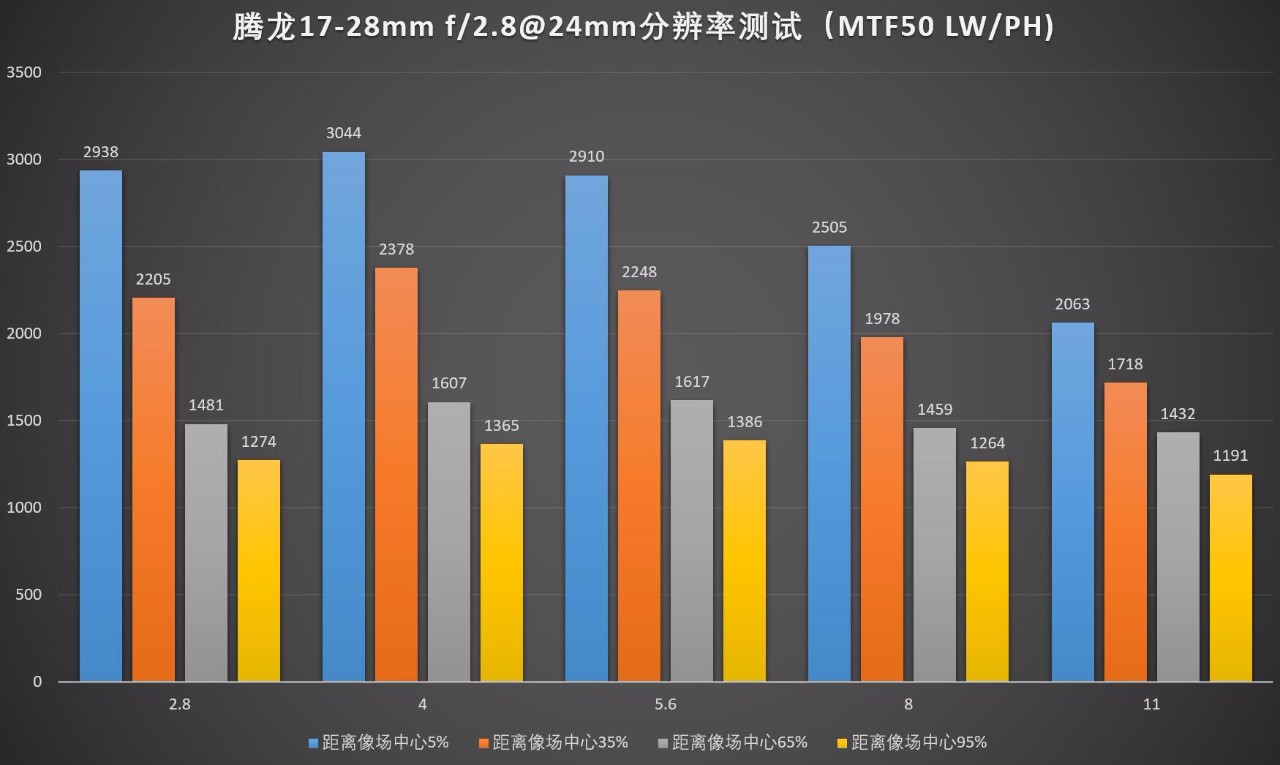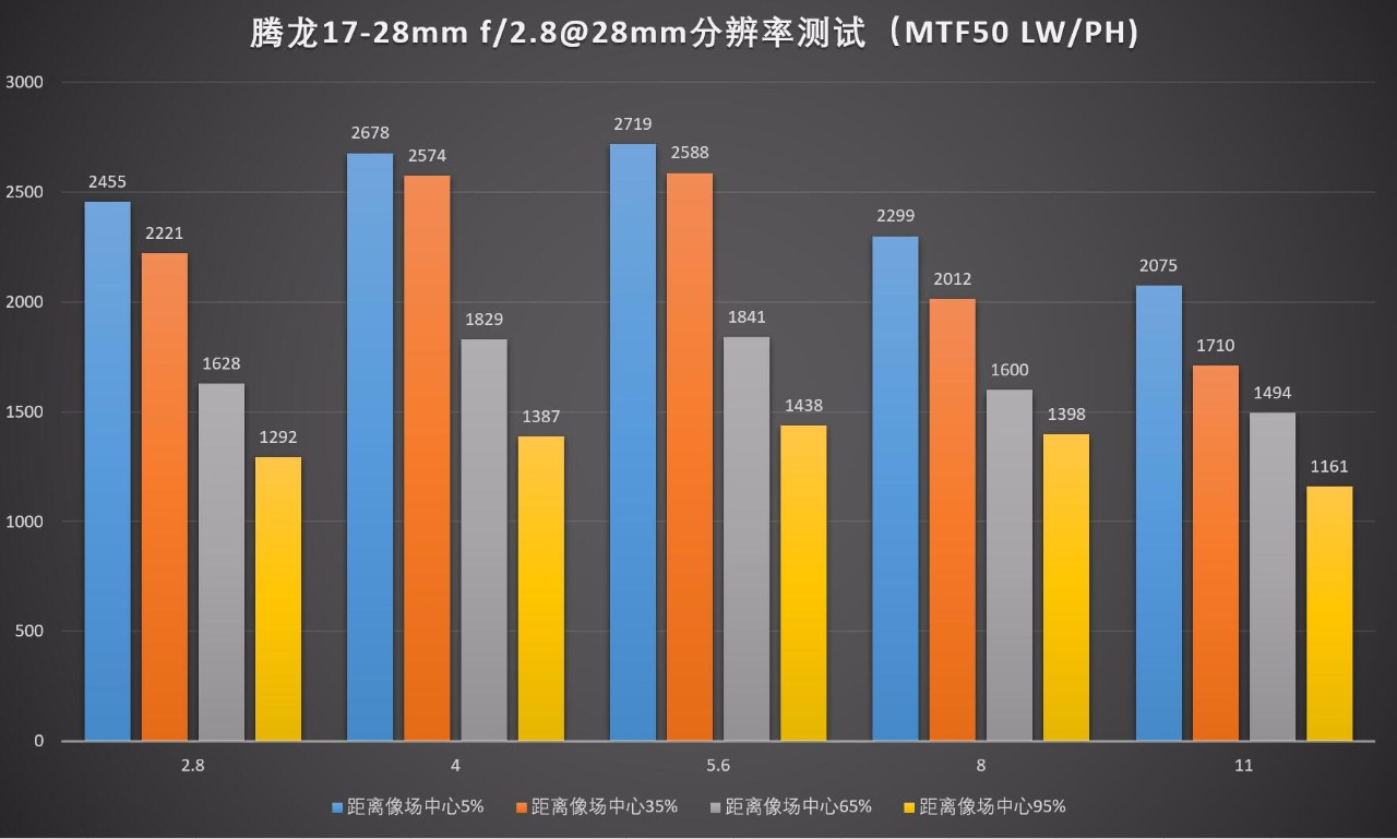 分辨率-焦距分布契合度:高,既然是广角镜头那当然要优先照顾广角端,这支镜头从广角到长焦画质逐步衰减。而且即使偶尔用一下28/2.8拍点什么小物件那基本足够满足需要。