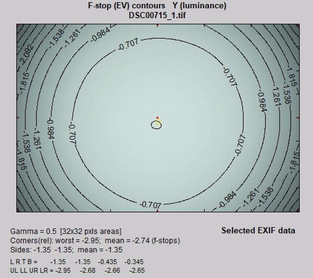 3、在考虑了畸变校正和倍率色差修正对于分辨率的影响之后输出最终的分辨率测试结果。原始的倍率色散(关掉能关的校正之后)和畸变数值一并给出,仅供参考(防止色散实在太大在大光比环境下翻车的情况)。